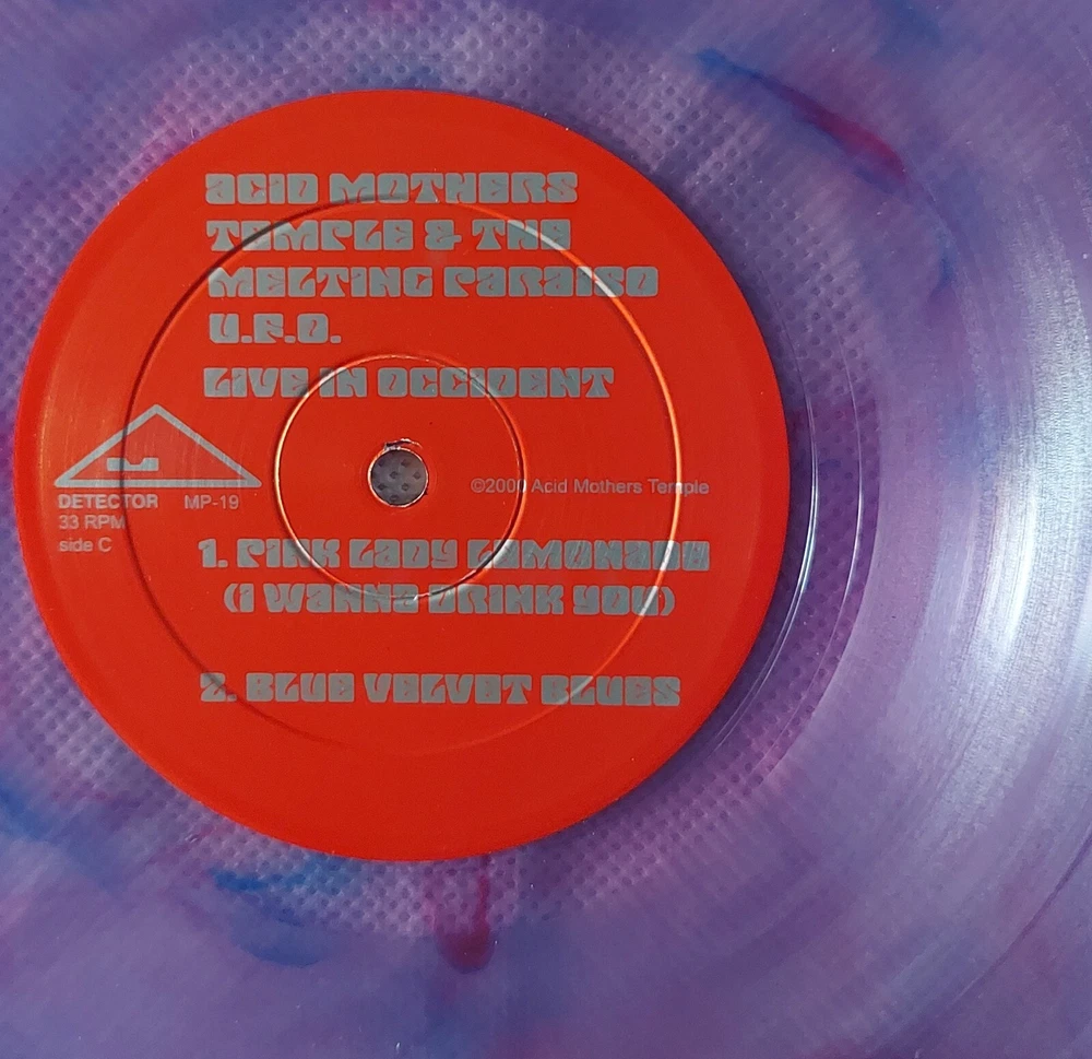 A great double LP live set of early AMT in their year 1999 element, live on a small stage and obliterating everyone's minds. Who's to say which is the best live AMT album?, on deck here is an shrinkwrapped original on transparent purple and lavender vinyl. Disc 2 has the slightest wave on it, like hardly there. Play tested, sounds awesome! Some great live sessions and an essential Japanese Psychrock album here!