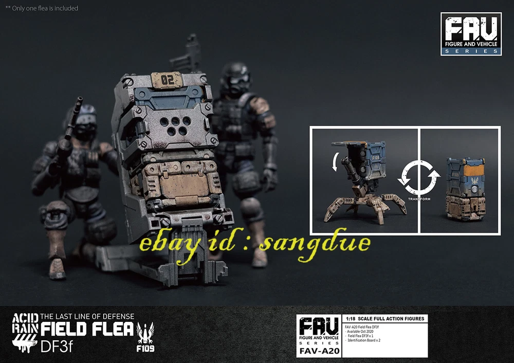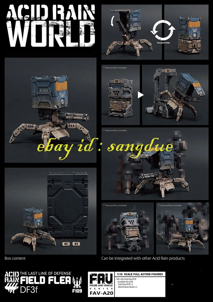 Acid Rain World 1/18 FAV-A20 THE LAST LINE OF DEFENSE Field Flea DF3f in stock Items Description: Material: PVC Size:1/18 FAV-A20 Field Flea DF3f Content: - Field Flea DF3f -Identification Board Field Flea DF3f is an all-terrain combat drone introduced by the Argus F109 Field Artillery Team from NAUS. In automatic escort mode, it can autonomously traverse rough terrain and rubble; and when switched to remote control mode, it can carry out precise strikes in complex combat zones. Due to its flexibility, durability, and high efficiency, the Field Flea DF3f is widely used in a variety of military applications. Please NOTE: 1. Product size measurement allows for errors of 1-2cm (0.39-0.79 inches). 2. Due to the light and screen difference, the item's color may be slightly different from the picture. 3.Commodity origin: At present, the hand-made model factories on the earth are basically established in China. After foreign brands are developed, they will be produced and processed in China, so the products will be printed with the words "made in china" or "made in China". But don’t worry, folks, all genuine products will be shipped to the market after strict quality inspection by the developer. 4.Regarding the difference between genuine and pirated versions: Although both the genuine hand-made models and the pirated products are from Chinese factories, they are not comparable in quality. However, since the quality inspection of hand-made polishing and coloring is done manually, it is inevitable that there will be defects. If you mind, please do not place an order to buy. +++++++++++++++++++++++++++++++++++++++++++++++++++++++++++++++++++++++++++++++++++++ Payment We accept Payoneer/PayPal/ Google Pay /Visa / Master Card /Amex /Discover Payments If you have any questions about payment. Please feel free to contact me. Shippment We will pack and deliver the goods within 7 days after the order is paid to the shipping company. If you need to change the delivery address, please inform us before payment. We send it all over the world by air mail. In the United States and major European countries, we will use speedpak, a logistics company recommended by eBay, to ship goods within 8 to 12 days. Other countries usually take 8 to 25 days, but sometimes it may take about 30 days to arrive. If you do not receive the package for more than 30 days, please contact us and we will help you solve the problem (reissue or full refund). Return Policy If you have any questions about the transaction, such as defects or dissatisfaction, you can return and replace the goods within 7 days after receiving the goods. We will make our judgment according to the actual situation. In principle, the freight for return shall be borne by the responsible party. Please contact us before leaving any feedback and give us an opportunity. We will try our best to find a solution that satisfies you. About us & Feedback 1. We provide high-quality brand new products and priority customer service. Your satisfaction is what we are keep trying to do. 2. Every customer is important for us, if you are happy with our service and product please give us positive feedback, thank you for your effort ! 3. The star-scores are very important to us, If anything about your transaction did not meet your expectations. Please let us know and give us the opportunity to work out for you before you leave a negative feedback. 4. If any question about you received product, please feel free to contact us via Ebay Message or email, we will reply to you within 12 hours. 5. If you have not received the goods, please contact us in time, If the goods are lost by the logistics company, we will make compensation.