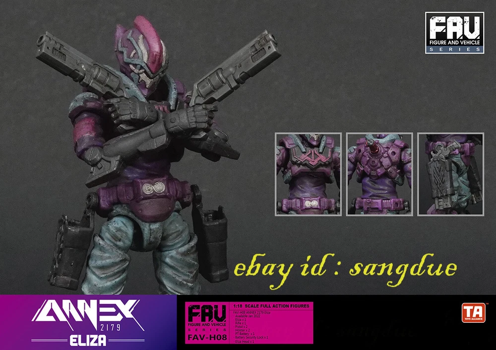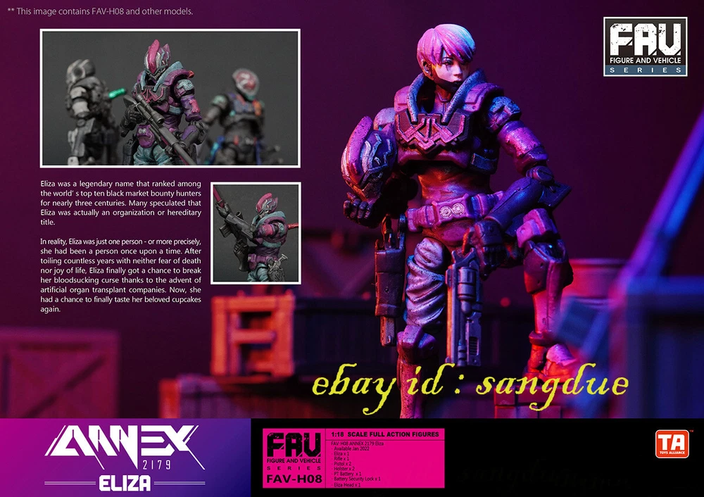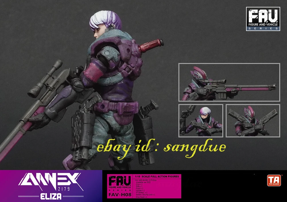 Acid Rain World 1/18 FAV-H08 Eliza Movable Soldier in stock Items Description: Eliza description: Eliza, the name has long occupied the top ten black market bounty hunters list, and has held it for nearly 300 years. Most people speculate that Eliza is an organization or hereditary title. But in reality, Eliza has always been the same person, or rather, was a person. She has lived through countless years without the fear of death, without the surprises of life. Until the advent of the artificial organ company, Eliza hopes to take this opportunity to break free from the shackles of blood-sucking and have a chance to taste her favorite cupcake again. contents: - Eliza x 1 - Rifle x 1 - Pistol x 2 -Holster x 2 - PT Battery x 1 -Battery Security Lock x 1 - Eliza Head x 1 Please NOTE: 1. Product size measurement allows for errors of 1-2cm (0.39-0.79 inches). 2. Due to the light and screen difference, the item's color may be slightly different from the picture. 3.Commodity origin: At present, the hand-made model factories on the earth are basically established in China. After foreign brands are developed, they will be produced and processed in China, so the products will be printed with the words "made in china" or "made in China". But don’t worry, folks, all genuine products will be shipped to the market after strict quality inspection by the developer. 4.Regarding the difference between genuine and pirated versions: Although both the genuine hand-made models and the pirated products are from Chinese factories, they are not comparable in quality. However, since the quality inspection of hand-made polishing and coloring is done manually, it is inevitable that there will be defects. If you mind, please do not place an order to buy. +++++++++++++++++++++++++++++++++++++++++++++++++++++++++++++++++++++++++++++++++++++ Payment Payment We accept Payoneer/PayPal/ Google Pay /Visa / Master Card /Amex /Discover Payments If you have any questions about payment. Please feel free to contact me. Shippment We will pack and deliver the goods within 7 days after the order is paid to the shipping company. If you need to change the delivery address, please inform us before payment. We send it all over the world by air mail. In the United States and major European countries, we will use speedpak, a logistics company recommended by eBay, to ship goods within 8 to 12 days. Other countries usually take 8 to 25 days, but sometimes it may take about 30 days to arrive. If you do not receive the package for more than 30 days, please contact us and we will help you solve the problem (reissue or full refund). Return Policy If you have any questions about the transaction, such as defects or dissatisfaction, you can return and replace the goods within 7 days after receiving the goods. We will make our judgment according to the actual situation. In principle, the freight for return shall be borne by the responsible party. Please contact us before leaving any feedback and give us an opportunity. We will try our best to find a solution that satisfies you. About us & Feedback 1. We provide high-quality brand new products and priority customer service. Your satisfaction is what we are keep trying to do. 2. Every customer is important for us, if you are happy with our service and product please give us positive feedback, thank you for your effort ! 3. The star-scores are very important to us, If anything about your transaction did not meet your expectations. Please let us know and give us the opportunity to work out for you before you leave a negative feedback. 4. If any question about you received product, please feel free to contact us via Ebay Message or email, we will reply to you within 12 hours. 5. If you have not received the goods, please contact us in time, If the goods are lost by the logistics company, we will make compensation.