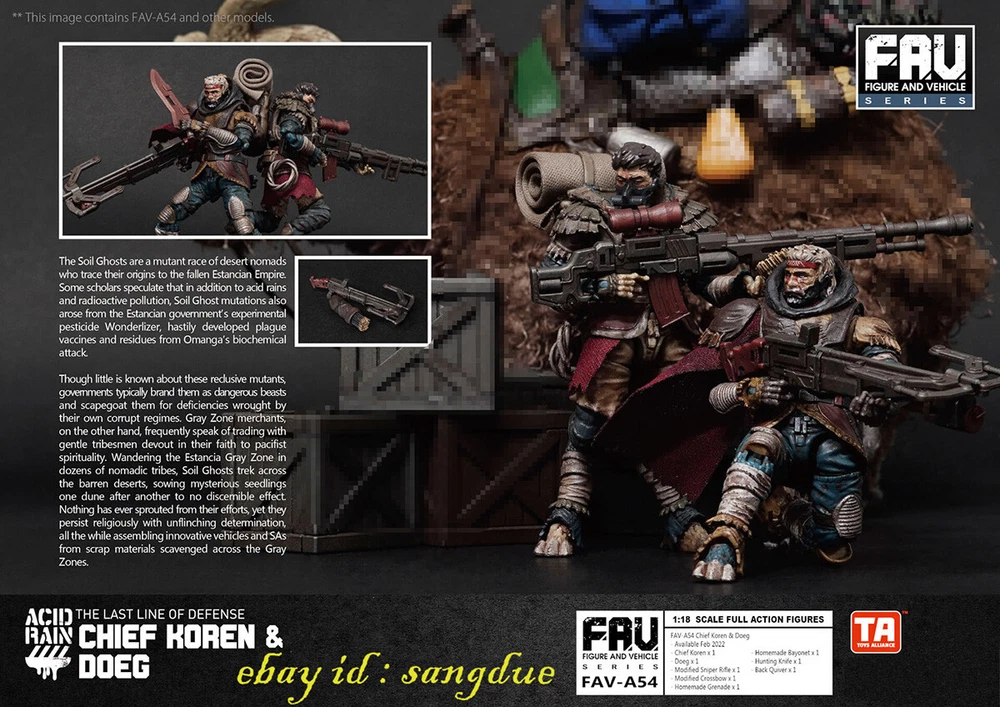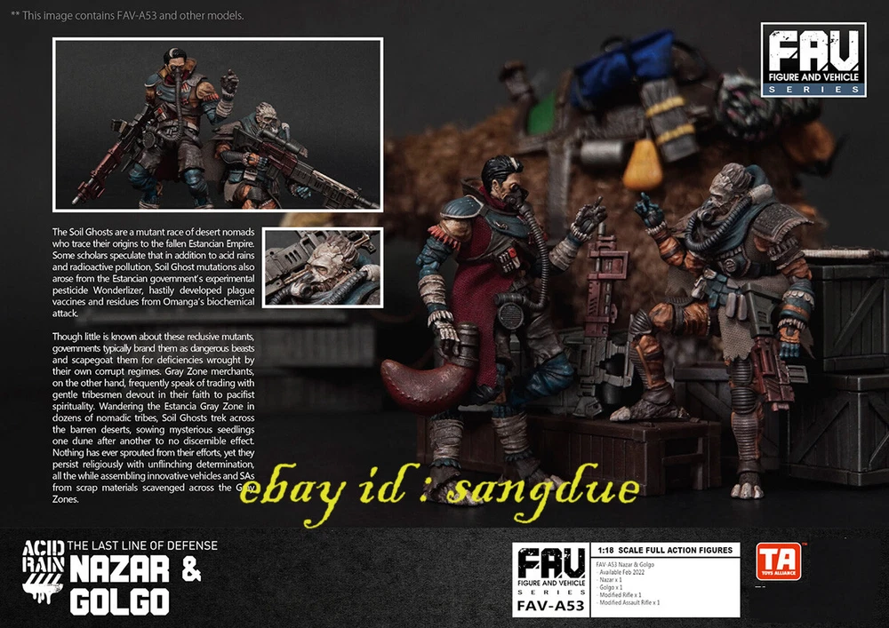 Acid Rain World 1/18 Sand Ghost A53/A54 Collectible Figure Model Soldier Items Description: Material: PVC Size:3.75 inch A53 CONTAIN: Nassar ;Gigi A54 CONTAIN:Karen Chief & Dowager Please NOTE: 1. Product size measurement allows for errors of 1-2cm (0.39-0.79 inches). 2. Due to the light and screen difference, the item's color may be slightly different from the picture. 3.Commodity origin: At present, the hand-made model factories on the earth are basically established in China. After foreign brands are developed, they will be produced and processed in China, so the products will be printed with the words "made in china" or "made in China". But don’t worry, folks, all genuine products will be shipped to the market after strict quality inspection by the developer. 4.Regarding the difference between genuine and pirated versions: Although both the genuine hand-made models and the pirated products are from Chinese factories, they are not comparable in quality. However, since the quality inspection of hand-made polishing and coloring is done manually, it is inevitable that there will be defects. If you mind, please do not place an order to buy. +++++++++++++++++++++++++++++++++++++++++++++++++++++++++++++++++++++++++++++++++++++ Payment We accept Payoneer/PayPal/ Google Pay /Visa / Master Card /Amex /Discover Payments If you have any questions about payment. Please feel free to contact me. Shippment We will pack and deliver the goods within 7 days after the order is paid to the shipping company. If you need to change the delivery address, please inform us before payment. We send it all over the world by air mail. In the United States and major European countries, we will use speedpak, a logistics company recommended by eBay, to ship goods within 8 to 12 days. Other countries usually take 8 to 25 days, but sometimes it may take about 30 days to arrive. If you do not receive the package for more than 30 days, please contact us and we will help you solve the problem (reissue or full refund). Return Policy If you have any questions about the transaction, such as defects or dissatisfaction, you can return and replace the goods within 7 days after receiving the goods. We will make our judgment according to the actual situation. In principle, the freight for return shall be borne by the responsible party. Please contact us before leaving any feedback and give us an opportunity. We will try our best to find a solution that satisfies you. About us & Feedback 1. We provide high-quality brand new products and priority customer service. Your satisfaction is what we are keep trying to do. 2. Every customer is important for us, if you are happy with our service and product please give us positive feedback, thank you for your effort ! 3. The star-scores are very important to us, If anything about your transaction did not meet your expectations. Please let us know and give us the opportunity to work out for you before you leave a negative feedback. 4. If any question about you received product, please feel free to contact us via Ebay Message or email, we will reply to you within 12 hours. 5. If you have not received the goods, please contact us in time, If the goods are lost by the logistics company, we will make compensation.
