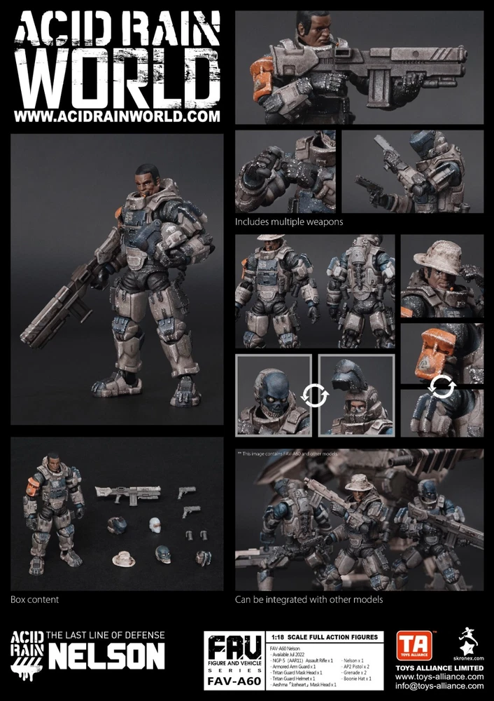 Acid Rain Nelson Soldier FAV-A60 New - In Stock Up for sale is a Mint in box Acid Rain Nelson Soldier. The item has never been on displayed nor has the item been removed from its package. It is brand new from a sealed case. Figure comes with weapons shown in the first image under Box Contents. Buy with confidence. Feel free to email me with any questions. International bidders are welcome, but please contact me first before buying. I only accept payment via PayPal. Happy Bidding. Please check out my other auctions. Payment is expected to be settled within 48 hours of the end of the auction. If you are unable to do so, please contact me immediately after the auction and let me know. Please do not bid if you have less than 10 positive feedbacks.