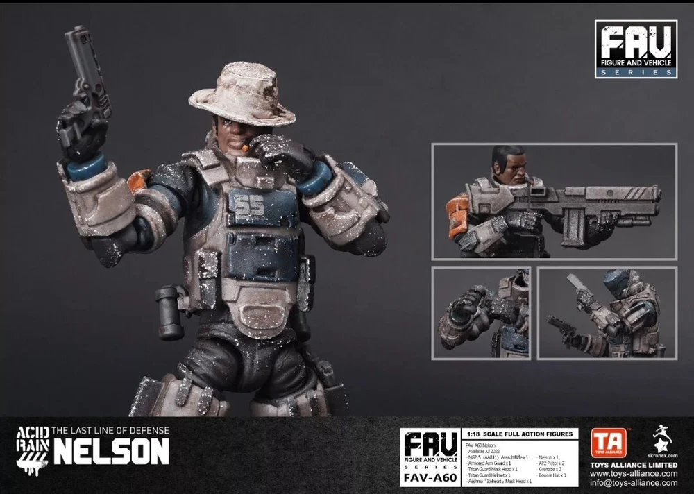 This Acid Rain World action figure is a must-have for any fan of the franchise. The 1:18 scale figure features FAV-A60 Nelson, a character from the game, and comes in a collector's edition unassembled kit. The multicolor figure is made of PVC material and is suitable for ages 5-7 years. The figure is an original licensed reproduction from the Acid Rain World brand and was manufactured in China in 2020. It is part of the Toys & Hobbies category and specifically the Action Figures & Accessories subcategory. Get this highly detailed and unique figure for your collection today!