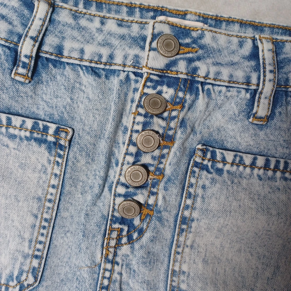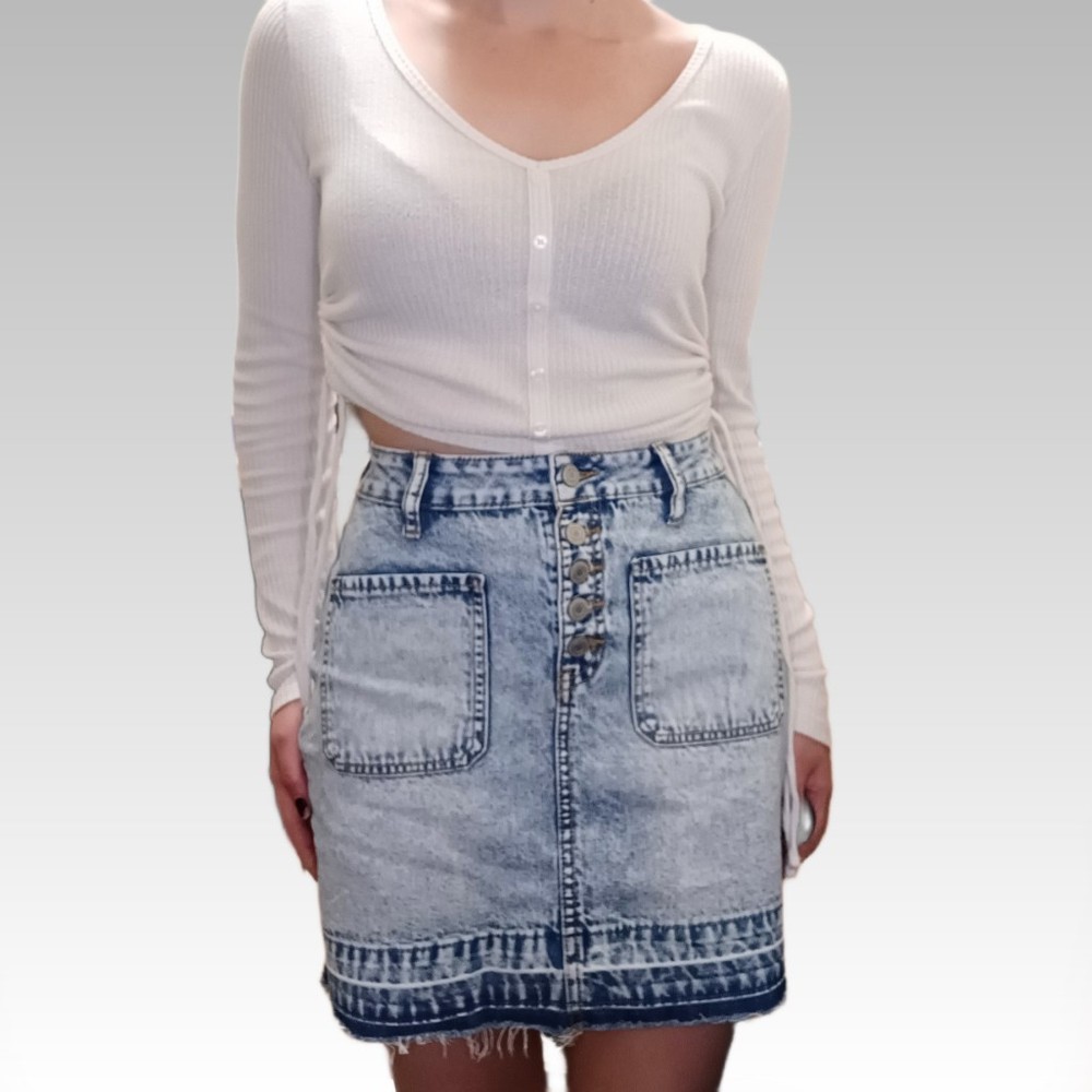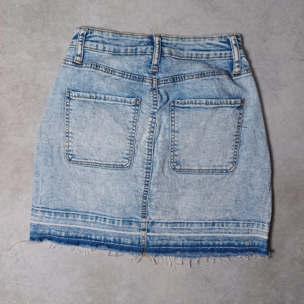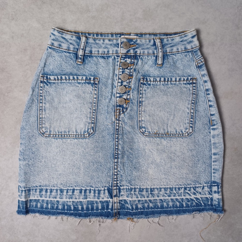 Acid Wash Denim Mini Skirt Size 8 XS Light Blue Raw Hem Button High Waist Slim Cute stretchy jean skirt, with stone washed fabric, raw hem and pockets. Made from a cotton blend. This skirt is in great condition. Size 5 - fits a UK 8 / XS. Pictured on a size UK 8-10. Measurements: Waist - 25 inches Length - 16.5 inches πππ Shipping is 2-3 working days. If you need next day shipping, there's an option available you can choose at checkout. Check out my wide selection of clothing for fantastic discounts. Including Buy 3 items get 1 item free! If buying multiple items you can message me for an extra discount for combined postage! Returns are accepted within 30 days of purchase. If you have any other questions or queries, please send a message. I usually respond same day :)