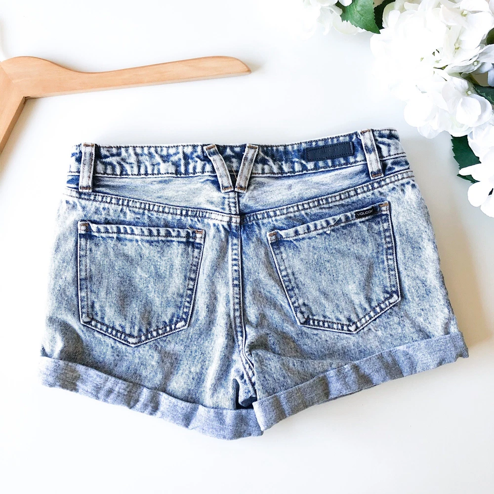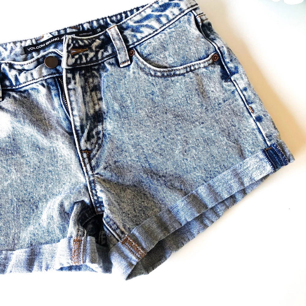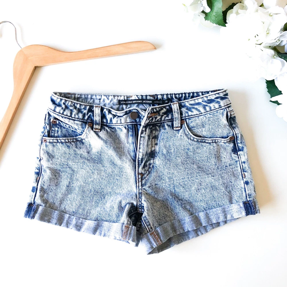 VOLCOM Boyfriend Fit Acid Wash Rolled Jean Shorts - Rolled Cuffs. Boyfriend fit. Acid wash style. - Belt loops. Front & back pockets. - Zipper button fly.- 100% cotton. Machine washable. Size: 25 Pre-Owned: Excellent condition. Clean. Smoke free Measurements: Waist 30". Length 10" Check out more items for sale on my page