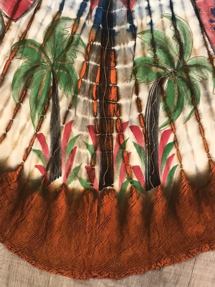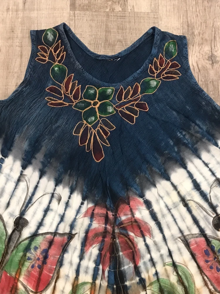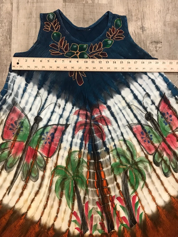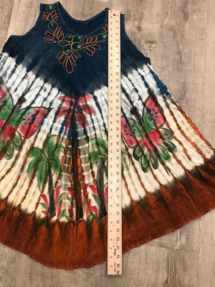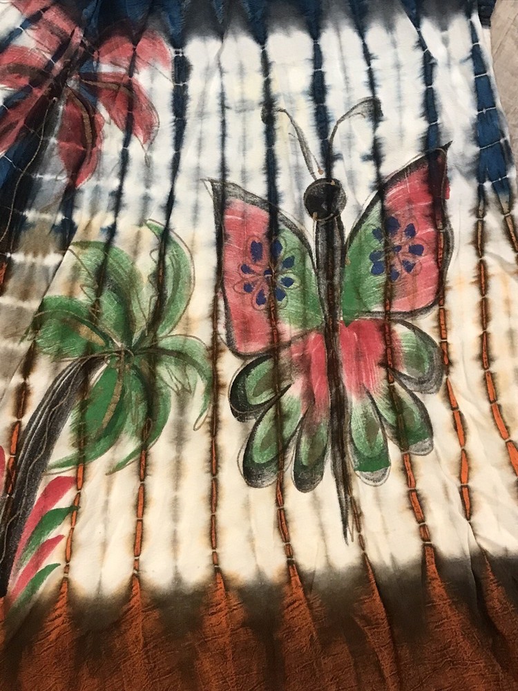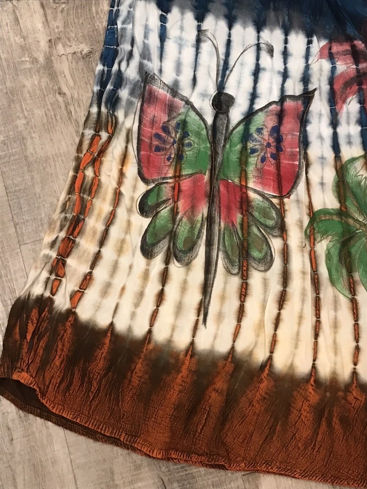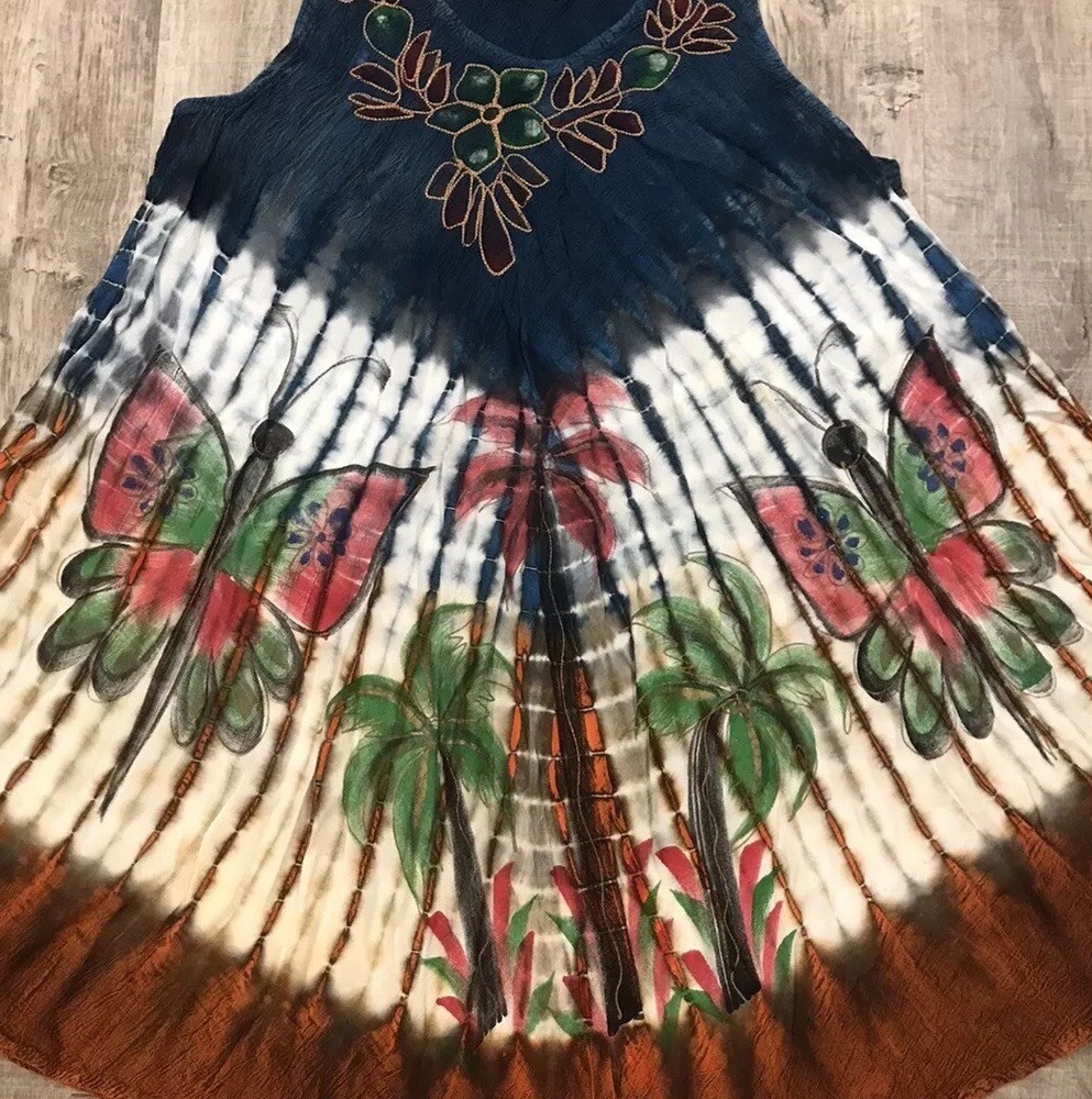 Acid Wash Tie Dye Embroidered Umbrella Dress Ombre Butterfly Palms Boho M/L ** Size/material tag is missing See pics for measurements Please reach out to me with any questions.. Thank you for visiting my page and supporting small business!!
