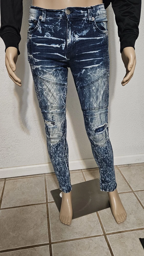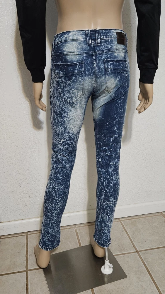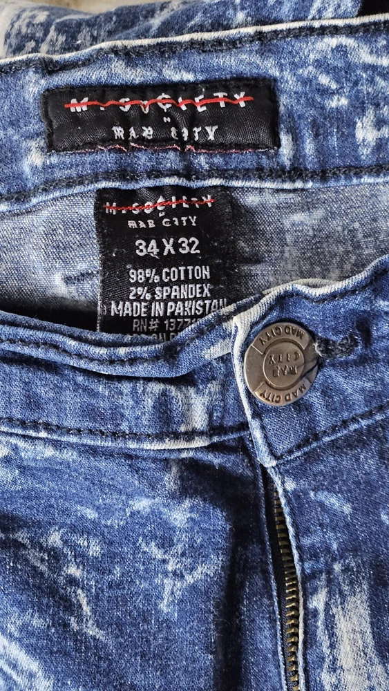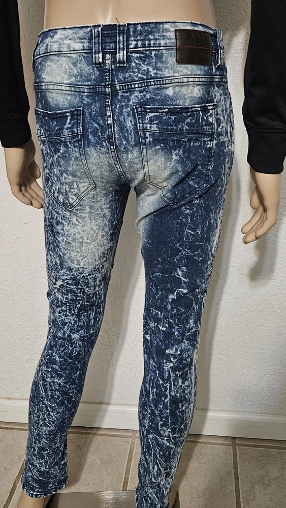 Elevate your style with these Acid Wash Y2K Destroyed Denim Jeans from M. Society. These slim fit jeans come in a classic blue color with a bleached pattern and distressed accents, giving them a vintage look that's perfect for any grunge or 90s-inspired outfit. The jeans have a mid-rise waist and a 32-inch inseam, with a 5-pocket design and a button and zip closure. Crafted from a cotton blend, these jeans are machine washable for easy care and feature stretch technology for added comfort. The pleated accents and zipper details add a touch of style to these jeans, making them perfect for any occasion. Whether you're hitting the city streets or running errands, these M. Society Mad City jeans have got you covered.