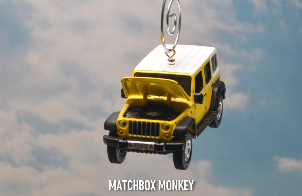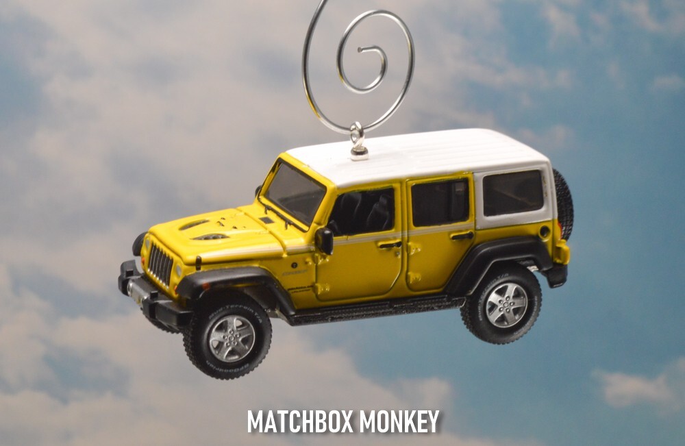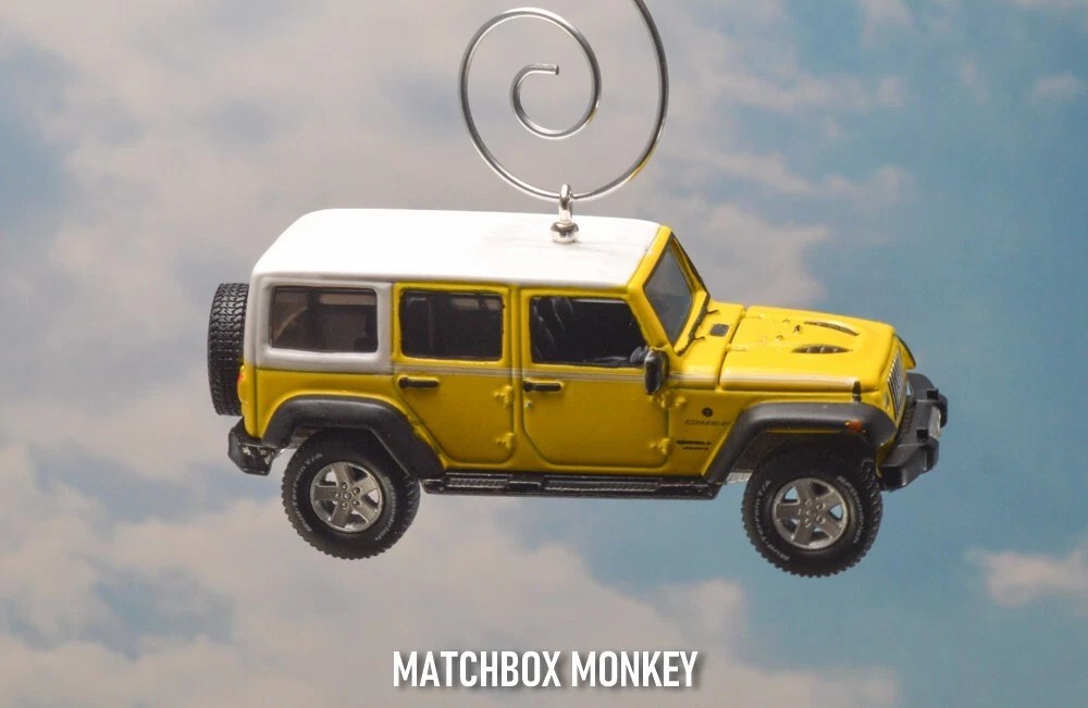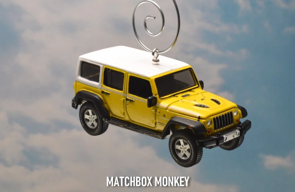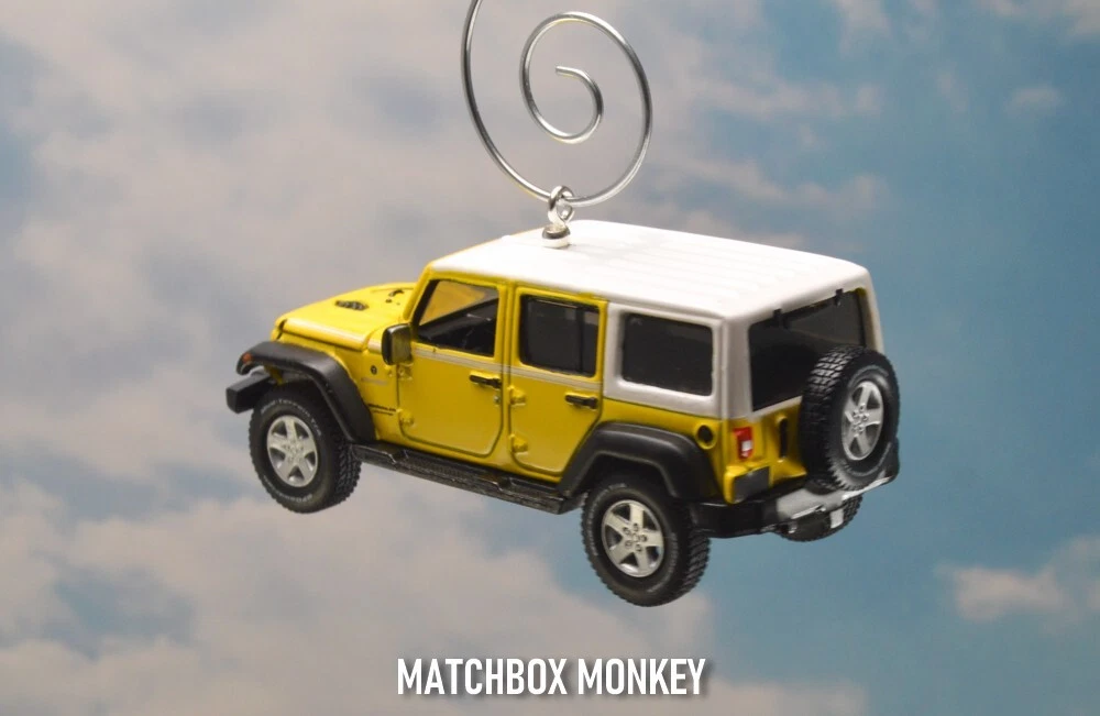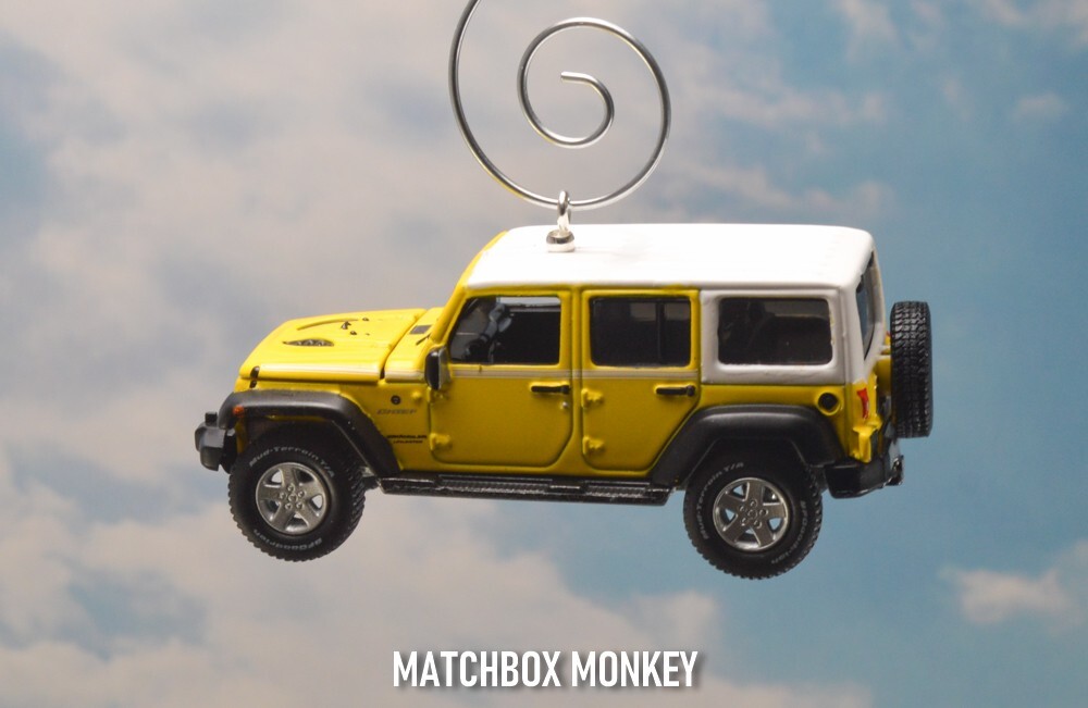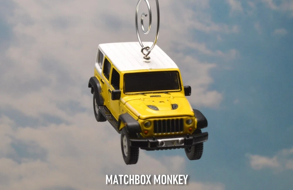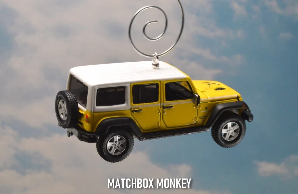 BRAND NEW! Jeep Wrangler - Chief Edition JKU Unlimited - Hard Top 2017 - Present Custom Christmas Ornament 1/64th Scale AWESOME! Customized Jeep Wrangler Ornament! This unique collectors piece depicts one of the most ICONIC SUV's in the history of the automobile - The Jeep! - the founding father of all SUV designs - and remains one of the most popular brands / styles still today! The detail on this is amazing and it is a rare 1/64th Scale 4 Door Unlimited version. The "Jeep" name is clearly depicted on the front of the grill and also features the "Jeep" name on the rear license plate! This one also has real rubber tires and a real rubber spare tire on the back! This Wrangler Chief Edition model is all done out in the Jeep Color: "Acid Yellow" Super cool! This is a Limited Edition Model! This beauty has metallic colored mag rims and a White hard top! This one has the hood that opens, revealing the real Jeep Engine (w/ Jeep name on it!) Get this one now! This ornament is 1/64 Scale (Measures approx 3.00" long) This Custom designed Ornament will look Great on the tree! Or will make a GREAT gift / stocking stuffer for the person on your list with everything! (They won't have this! ONE OF A KIND!) WARNING! Beware of others selling similar ornaments - who's pictures are taken without the ornament actually hanging ! *Each of my custom ornaments is made with acute attention to detail, and each is designed to hang as horizontally as possible for the best display on your tree! - I also use custom ordered parts that are designed to blend in, and not detract from the ornament itself! (some use large bulky eye screws that are way to big for these ornaments.) **I also have multiple HD pictures from ALL angles, don't take a chance for any surprises with just a single (many times blurry / out of focus) picture! This ornament will come complete with a Deluxe ornament hanger similar to the one pictured! Don't wait - get it now! Quantities are EXTREMELY limited as these are custom made! Don't miss this opportunity! I have been a trusted seller on eBay for over 23+yrs! My current rating is over 8600!! Your item will be shipped quickly and safely from a smoke free home! ***I always ship these Custom items safely in a ridged cardboard box with plenty of packing material for safe shipping / arrival!*** You won't be disappointed! Are you a Jeep FAN? Then you just HAVE to check out the amazing selection of Jeeps on my ebay store now! Just click here: Matchbox Monkey Ornaments Keychains NOTE: I have MANY other custom made Key Chains and Ornaments on my auctions now! () If you don't see what you are searching for, please ask! I may have just what you want, or can maybe find one just for you! Click on the "Ask Seller a Question" link at the very bottom of this auction listing.