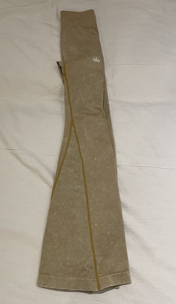 Experience the perfect blend of comfort and style with these ALO acid wash yoga pants, designed for the modern woman who values both fashion and function. The mustard yellow hue adds a vibrant touch to your activewear collection, while the compression-style fit ensures a smooth, contours to your body for a flattering look. Crafted from high-quality spandex material, these pants are ideal for a variety of activities, especially yoga. They are machine washable for easy care, and feature a stretch fabric that allows for a full range of motion. With a comfortable pull-on closure and a skinny leg style, these pants are tailored for the athleisure enthusiast looking for versatility in their workout wardrobe.