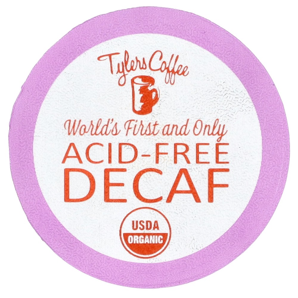 Drink Smart Drink Different Drink Tylers The World's Only Acid-Free Coffee USDA Organic Decaf Defined Swiss Water Process™ 100% Chemicals Free Certified Organic by A Bee Organic Z-ROASTING is a Proprietary Process which naturally prevents the 200 harmful acids from blooming in the coffee bean. TYLERS COFFEE is made from the highest quality USDA Organic AAA Arabica Beans. Benefits of Regular Acid-Free Coffee Limits Heartburn, Indigestion and Bloating Minimizes the Damage to tooth enamel Non-irritating to senestive stomachs Reduces Acid-Reflux Issues 100% Chemical Free Decaffeination What Makes Tylers Coffee Different? Today every coffee on the market contains harmful Tannic and Lipid Acids which reach wreak havoc on the stomach and are normally bloomed during the roasting process Our eBay Store About Us Contact Us Add to Favorite Sellers Expiration Date: 07/20/2026 Disclaimer: Our receiving department does its best to verify and then enter the correct expiration dates for all incoming products. However, discrepancies do occur from time to time. This being said, the exceptionally high turnover at iHerb ensures that our inventory is among the freshest in the industry. Tylers Coffees, Acid-Free Organic Decaf, 16 Single Serve Coffee Pods, 8 g Each DESCRIPTION: Drink Smart Drink Different Drink Tylers The World's Only Acid-Free Coffee USDA Organic Decaf Defined Swiss Water Process™ 100% Chemicals Free Certified Organic by A Bee Organic Z-ROASTING is a Proprietary Process which naturally prevents the 200 harmful acids from blooming in the coffee bean. TYLERS COFFEE is made from the highest quality USDA Organic AAA Arabica Beans. Benefits of Regular Acid-Free Coffee Limits Heartburn, Indigestion and Bloating Minimizes the Damage to tooth enamel Non-irritating to senestive stomachs Reduces Acid-Reflux Issues 100% Chemical Free Decaffeination What Makes Tylers Coffee Different? Today every coffee on the market contains harmful Tannic and Lipid Acids which reach wreak havoc on the stomach and are normally bloomed during the roasting process. These Acids are what cause the bitter bite, upset stomach and damage to tooth enamel normally associated with coffee. One of the top pesky side-effects of these Acids can aid in the development, or flare-up of I.C ., O.A.B ., Chrons, Colitis, Gerd or Pylori issues. As the only Acid-Free Coffee we are able to bring back the joy of coffee to who those who suffer from these stomach related modalities and you can rest assured that you are enjoying your daily cup while benefiting your body with every sip with Tylers Acid-Free Coffee "Tylers Coffee was the most tolerable coffee with the least amount of side effects in patients with IC, OAB, and GERD." Joseph V. Ditrolio | Diplomate, Board of Urology SUGGESTED USE: Must Use Purified Water - Acid content may vary depending upon temperature conditions, source and natural pH level of the water used. INGREDIENTS: 100% Organic arabica beans. WARNINGS:
