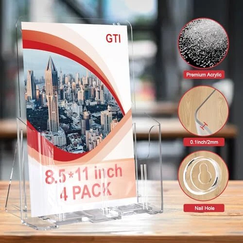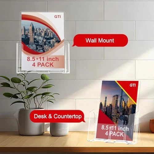 Return Policy Fast Delivery Trusted seller Acrylic Brochure Holder 8.5 x 11 inch, 4 Packs Brochure Display Stand for 4" Trifold Pages, Clear Flyer Display Holder for Magazine, Pamphlet, Booklets, Menu,Journals Product Description [Acrylic Material]: 8.5 x 11 inch acrylic brochure holder has 4 packs, is made of premium clear acrylic which is 2mm thick. Strong and durable, scratch-resistant and highly transparent, making it a very good choice for you. [Two-in-One]: brochure display stands not only for holding 8.5 x 11-inch flyers, magazines, Documents, booklets, menus, promotions, literature, and other art photos—also a good choice for having 4 x 9-inch trifold pamphlets. [Excellent Design]: The flyer display holder opening with a rounded edge design can insert and remove brochures with ease. It provides a neat and organized display that enhances your marketing efforts. [Stable/Tabletop&Wall Mount]: The acrylic display stands features a slanted back design for stability on any desktop. The anti-slip slots keep your brochures neatly displayed and prevent the bottom from curling or warping. Two holes in the back for optional wall mount use. [Wide Application]: This plastic sign holder is versatile and can be used in various settings, including hotels, libraries, schools, churches, restaurants, exhibitions, offices, trade shows, and boutique environments. Ideal for business or personal use. Shipping Returns Payment Shipping Shipping is FREE to all addresses other than APO/PO boxes in the lower 48 states. All our stock ships from US-based warehouses. Shipped via USPS or UPS (depending on location and package weight) Unless stated otherwise, all orders will ship within 24-72 hours of your payment being processed. Check our feedback to see the great reviews of FAST shipping we offer. Returns Seller does not accept returns Payment We currently accept payment via eBay managed payments only. Once payment is cleared, we will dispatch your shipment within 1-3 business days. Please refer to the "Shipping" tab for more information regarding shipping speed to your destination.