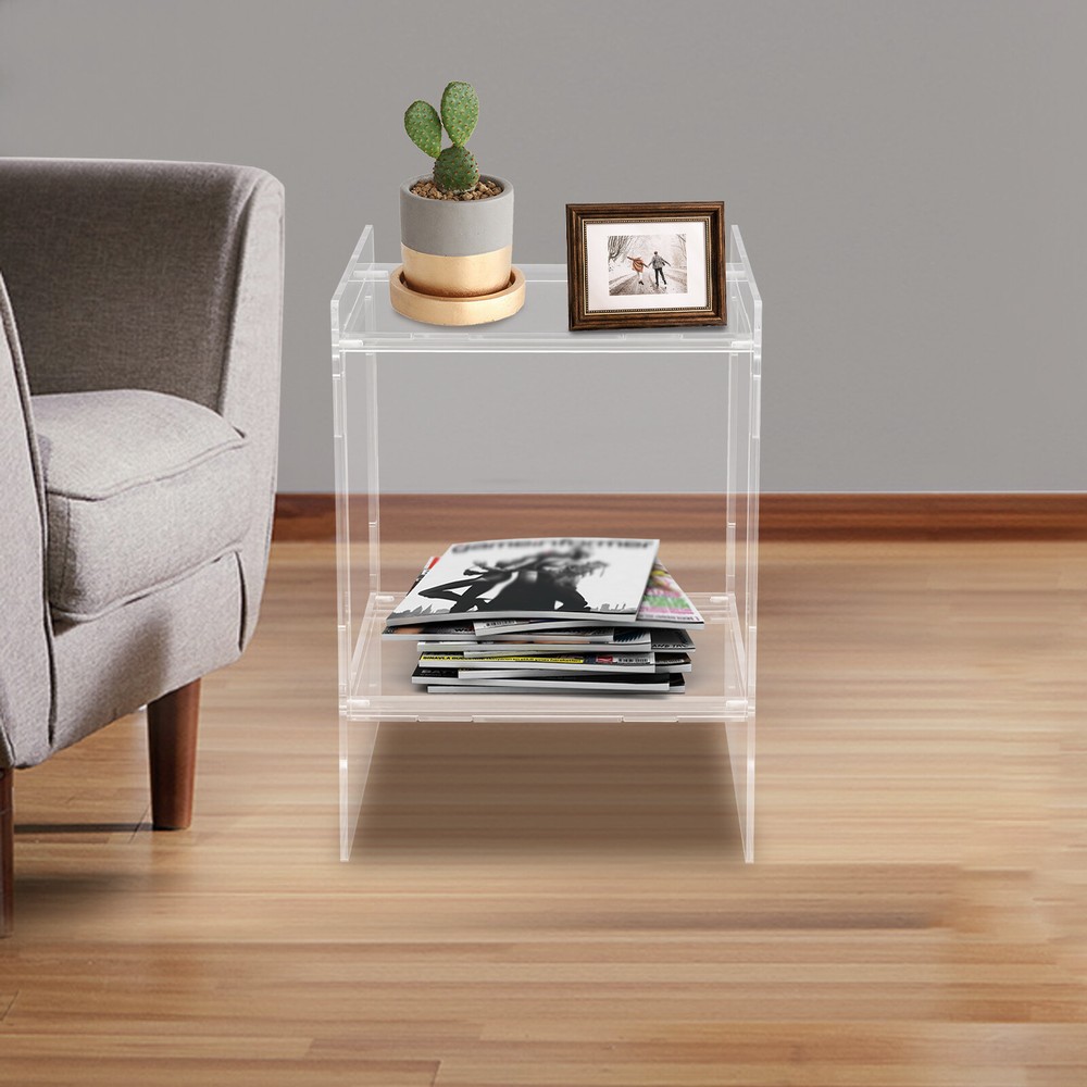 $ 17.04Clear Acrylic Side Table with 2 Tires Modern Living Room or Bedside Coffee Table