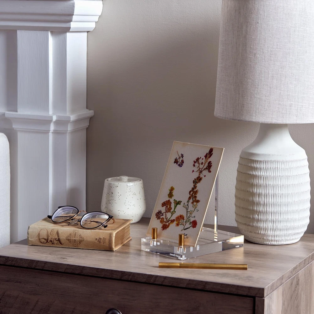 Introducing our Clear Acrylic Display Easel, the perfect blend of elegance and functionality for all your display needs. This versatile piece is an essential desk accessory designed with the modern user in mind, perfect for your workspace or home. Measuring a compact 4” x 6” x 6”, this acrylic stand offers ample support for various items, making it an ideal phone stand, picture frame stand, or even a cookbook stand. Crafted to make a statement, our acrylic easel combines minimalist design with flawless craftsmanship. Its polished edge construction ensures a sleek, modern aesthetic, allowing your documents, artwork, or images to take center stage. Whether showcasing a prized photograph, supporting a cherished cookbook, or holding your phone for hands-free viewing, this display stand provides subtle yet effective support. The adjustable feature is accentuated by repositionable gold-toned hardware, adding elegance and functionality. This allows you to customize the stand's configuration, ensuring it meets the unique demands of your display items, be it photos, notes, or art prints. Its adaptable nature makes it a versatile addition to any setting - from the bustling office environment to the serene home studio. Beyond its primary function as a phone holder or picture stand, this acrylic display stand doubles as a plate or picture stand. Its sturdy construction and clean lines make it suitable for various occasions, ensuring that it complements, rather than competes with, the items it holds. The world of lies at the intersection of color, function, and light-heartedness. We have an instantly recognizable style language, developed through colors and patterns that capture the essence of who we are and what we stand for. Our philosophy is that good design is not over-design or design for design’s sake, but rather pleasing design with loads of functionality. While fresh in spirit, the products represent a constant and complete dedication to quality. Versatile Display Stand: This acrylic easel functions as a phone stand, display stand, or picture frame stand, making it ideal for diverse uses; the minimalist design is the perfect addition to your desk accessories Adjustable with Elegance: Featuring repositionable gold-toned hardware, this acrylic easel accommodates photos, notes, or artwork. Its compact design serves as a functional display stand or a stylish picture stand Sophisticated Picture Frame Stand: The acrylic display stand is crafted from flawless polished edges, providing a modern touch, whether as a phone stand or a picture frame stand, it elevates the aesthetic of any space Minimalist Acrylic Stand: Designed to highlight your materials, this picture stand doubles as a phone holder. Its subtle elegance suits professional environments or home settings, offering a sleek, unobtrusive presence Compact Picture Stand: This acrylic display stand merges style and function that is perfect for tabletops or desktops, the polished edge construction makes it an excellent acrylic easel stand for display