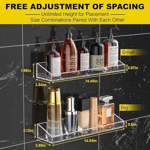Return Policy Fast Delivery Trusted seller Acrylic Floating Shelves 2 PCS, 15" Acrylic Shelves for Wall, Waterproof Acrylic Shower Shelves for Bathroom, Kids Bookshelf for Display,Wall Mounted for Bedroom, Living Room,Kitchen Product Description 【Space Saving】acrylic shelves for wall provide multi-layer storage, allowing you to utilize wall space more efficiently. You can conveniently store everything while keeping your room organized. It's a great space-saving wall organizer. 【Unique Decoration】 Invisible display shelves for bedroom, living room, bathroom, kitchen can not only display your items, but also add decor to your room. Everything looks clear on the acrylic wall shelf with high transparency. You can find your item quickly. 【Sturdy Acrylic Floating Shelf】Made of thick acrylic, sturdy and durable, when you use adhesive to install the acrylic floating shelf, it can withstand up to 8.8 pounds, when you use screws to install it, it can withstand up to 30 pounds, not easy to break. All edges are carefully polished to ensure safety and smoothness. The edges on the front can prevent the decorations from falling off. 【2 Easy Ways to Install】 Clear wall shelves have pre-drilled holes, detailed instructions and all necessary mounting hardware “screws, wall anchors, plastic spacers”, which makes installation simple and easy in a few minutes. 【Value for Money】 acrylic floating shelves are a great addition to any space and a set can meet all the space needs of the home. Let's decorate your home together and your kids will love it too. Shipping Returns Payment Shipping Shipping is FREE to all addresses other than APO/PO boxes in the lower 48 states. All our stock ships from US-based warehouses. Shipped via USPS or UPS (depending on location and package weight) Unless stated otherwise, all orders will ship within 24-72 hours of your payment being processed. Check our feedback to see the great reviews of FAST shipping we offer. Returns Seller does not accept returns Payment We currently accept payment via eBay managed payments only. Once payment is cleared, we will dispatch your shipment within 1-3 business days. Please refer to the "Shipping" tab for more information regarding shipping speed to your destination.