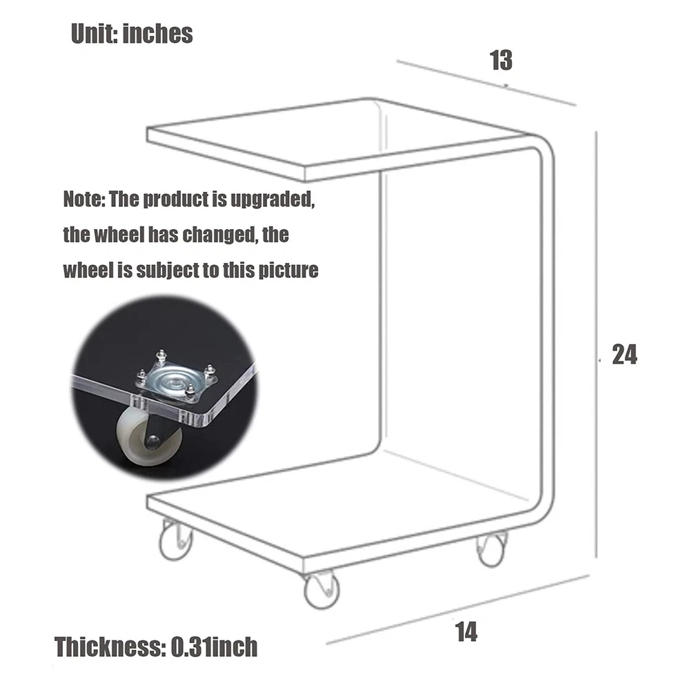 Product parameters: Product size:33*38*58cm(12.99*14.96*22.83inch) Packing size:40*40*60cm Product net weight:8kg(17.64lb) Package weight: 8.5kg Material: Acrylic Color:transparent product features: 1、Simple and beautiful 2、Movable and convenient packing list: 1、Removable bedside table*1 Acrylic Movable Clear Bedside Table C-Shaped End Table Snack Table on Wheels! Acrylic C Shape Accent End Table, Clear Movable Coffee Table Side Table, Rolling Beside Table with Wheels, Nightstand Storage Shelf Racks for Living Room and Bedroom, 17.3x15x22.6inch Product Parameters: Product Size33*35.5*60cm12.99*12.98*23.62 inch Packing Size40*40*60 cm Product Net Weight8 kg17.64lb Package Weight: 8.5 kg Material: Acrylic ColorTransparent Product Features: CHIC DESIGNER STYLE This minimalist piece of furniture is a beautiful complement to any home. This gorgeous C-shaped table is sleek andclear, occupying only a small visual space, and matching all styles of home decoration. It is beautiful and practical. LARGE STORAGE SPACE Minimalist designer design, This C-shaped modern table has spacious landings that offer plenty of room for storage and display while still looking like a designer furniture piece. ROLLING BESIDE TABLE WITH WHEELS Equipped with 4x 360-degree non-scratch casters and 4 protective plastic foot plugs. To protect the floor and avoid damaging the floor when using foot plugs. DURABLE MATERIAL & LIGHT WEIGHT This side table is made of acrylic. Simple and generous transparent glass to create a stylish appearance. Very lightweight living room table that can be easily relocated and moved. WIDELY USE The small footprint of this side table allows it to be used anywhere that you need it in the home including the living room, bedroom, kitchen, or hall. Packing List: 1Removable bedside table×1 Payment Delivery details Terms of sales About us Contact us Payment We accept ebay payment 。 Fees such as import duties, taxes are not included in the item price or shipping costs. These charges are the buyer's responsibility. Delivery details Shipping: 2-9 working days to: USA Terms of sales We maintain high standards of excellence and strive for hundred percent customer satisfaction. Feedback is very important to us. We hope that you contact us immediately before you give neutral or negative feedback, so that we can address your concerns. It is impossible to address issues if we do not know about them! About us Your satis faction is our ultimate goal. We work hard to earn your trust and future business. Our certified technicians have tested each item before shipping. The unit comes with 1 year limited warranty on all manufacturing defects. a) If you receive a defective item, you may return it or ask for a discount. Please contact us within 14 days after you receive the package. b) What you returned must be intact and in its original packaging as re? u. Customer is responsible for shipping costs of the returned item. c) We will cover the cost of shipping back t with the shipping rate indicated in the registration page. We will send you a new unit or refund the full payment you paid. Thank you. Contact us Business Hour Business Hour: Monday To Friday: 8:30 AM to 5:00 PM (Beijing China time) Due to time zones, our reply to your questions may not be immediately. But within above working time, we will reply your email within 24 hours. If it's non-workdays, please kindly be patient and wait till Monday. Please contact us with ebay message. Please feel free to contact us if you have any questions. Monday To Friday: 8:30 AM to 5:00 PM (Beijing China time) Due to time zones, our reply to your questions may not be immediately. But within above working time, we will reply your email within 24 hours. If it's non-workdays, please kindly be patient and wait till Monday. Please contact us with ebay message. Please feel free to contact us if you have any questions. warranty period: 3 Years Features: Nice and Practical, High Quality Packaging Feature! Creative Design,Durable Material,Beautiful Appearance Feature💖 FAST SHIPPING FROM US LOCAL WAREHOUSE! Brand Unbranded Item Height 58 cm Item Length 38 cm Item Width 33 cm Type C Table Material Acrylic Tabletop Material Acrylic Color Clear Shape C Shaped Features Movable Style Modern Room Bathroom, Bedroom, Dining Room, Living Room Indoor/Outdoor Indoor & Outdoor Model C Shape Table Item Weight 8kg/17.64lb Assembly Required Yes Assembly Status Fully Assembled Department Adults Handle Material N/A Additional Parts Required Yes MPN Does not apply Product Line N/A Product size 33*38*58cm(12.99*14.96*22.83inch) Packing size 40*40*60cm Package weight 8.5kg Number of Drawers 1 Manufacturer Warranty 3 Years Country/Region of Manufacture Unknown Pattern C-shaped Finish Acrylic Theme Space Handle Finish N/A EAN dose not apply UPC dose not apply