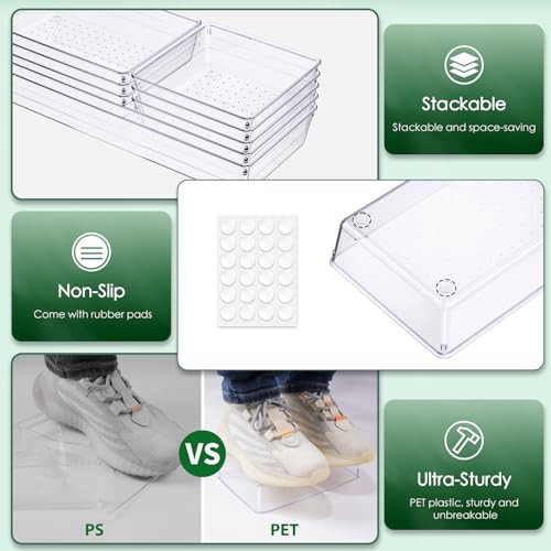 Menu 1. We require immediate payment. 2. We currently accept payment via eBay managed payments only. 3. Once payment is cleared, we will dispatch your shipment within 1-3 business days. Please refer to the "Shipping" tab for more information regarding shipping speed to your destination. Drawer Organizer Set, Acrylic Non Slip Non Cracking Kitchen Drawer Storage Tray Large Size Divider, Multifunctional Storage for Cosmetics, Bathroom, Tools, Kitchen and Office (8 PACK) Product description 【Larger Size】With 3 different sizes, including: 6 x 6 x 2 inches (3 Pack), 6 x 9 x 2 inches (3 Pack), 6 x 15 x 2 inches (2 Pack). Compared with other products, it can store more and larger size kitchenware, knives, tools, etc. 【High Quality Material】Our desk drawer storage set is made of high quality and eco-friendly material PET plastic. Very sturdy, lightweight, unbreakable and reusable. Our 8-piece plastic drawer storage trays will help you create a personalized organization and storage system that works best for you. 【Stackable & Non-Slip Design】Comes with non-slip silicone pads stickers, when the drawer suddenly opens or closes, the silicone pads will hold these organizers firmly in place. When not in use, the boxes can be stacked on top of each other to maximize your storage space. 【Make Everything Organized】 Perfect for organizing makeup tools, bathroom supplies, office supplies, crafts, kitchenware, tableware, tools, etc. You can customize combinations to store items and organize drawers for your specific needs. 【Curisia System】 Each set of Curisia clear drawer organizer has undergone rigorous quality inspection for superior quality and is a must-have item for your home. If you are not satisfied with the product, we offer a 3-year warranty on exchange or refund. PLEASE MESSAGE US IF YOU HAVE ANY OTHER QUESTIONS, AND MANY THANKS FOR READING ALL OF THIS. Copyright ©#. All Rights Reserved.