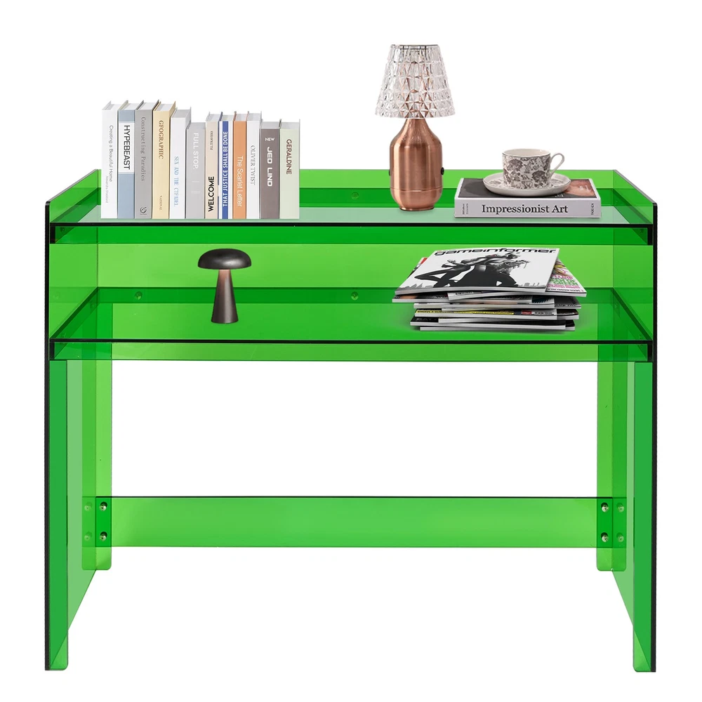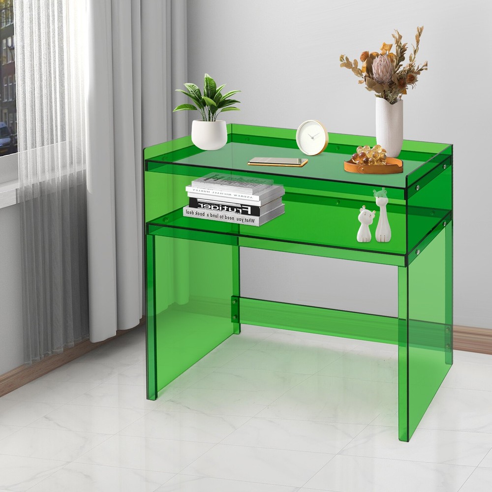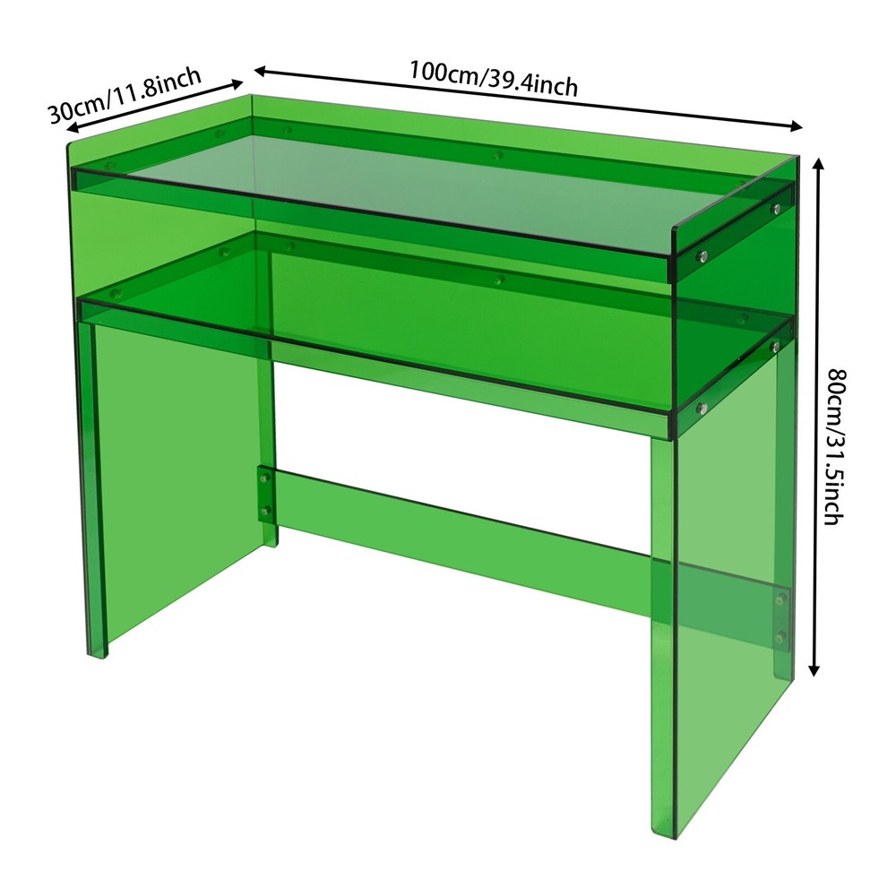 Specification Material: Acrylic Color: Green Style: Modern Assembly Required: Yes Mounting Type: Free Standing Shape: Rectangle Number of Tiers: 2 Material Thickness: 8mm/0.32in Product Size: 100*30*80cm/39.4*11.8*31.5in Package Size: 105*35*10cm/41.34*13.78*3.94in Gross Weight: 18.9kg/41.67lbs Net Weight: 17.95kg/39.57lbs Package Included 1* Acrylic Desk NEW Acrylic Desk Small Entryway Table with Open Shelves Entry Table 100*30*80cm Description Our acrylic desk is a multi-functional shelf designed for home and office environments. It combines the aesthetic properties of clear acrylic with a practical design to provide your space with a shelving solution that is both aesthetically pleasing and functional. Whether it's for books, stationery, or decorative items, it easily blends in and enhances the overall ambiance. Key Features Made to Last: This product is made of selected acrylic, sturdy and rust-resistant, which has a smooth surface and is not easy to deform, ensuring long-term service life. Strong Load-bearing Capacity: With thickened panels and a stable rectangular structure, which can easily accommodate heavy objects such as vases, table lamps, etc. Exquisite Appearance: Its clear acrylic style will blend with your existing home decor styles, which is an ideal decoration for entryways, hallways, and behind sofas to garnish your home. Space-saving: It is tailor-made for narrow spaces like entryways, hallways, and corridors, compact and exquisite, optimizing your space without compromising on style. Multiple Use: It can be used not only as a side table but also as a small display shelf, decorative shelf, and many other uses. Effortless Cleaning: It has a smooth surface and an open structure, so you only need to wipe the dust or residue with a towel (not included), making it ideal for busy individuals or those with minimal time for upkeep. Ideal Gift: With good performance and a modern appearance, it can be used as an ideal housewarming gift for parents, friends, and lovers so that they can also enjoy a more exquisite life. Good Customer Service: We aim to provide quality products and services. If you have problems, please feel free to contact us. We will reply, and solve the problem for you as soon as possible. Details Multiple Tiers: It has two tiers of space (including the top level) and a large under-desk space to accommodate different storage needs. Smooth Lines: Vertical and horizontal lines are smooth, allowing them to fit tightly into corners and walls, contributing to stable placement. Application This acrylic desk is ideal for an entryway, hallway, behind a sofa, or as a decorative piece for any room in your home. Specification Material: Acrylic Color: Green Style: Modern Assembly Required: Yes Mounting Type: Free Standing Shape: Rectangle Number of Tiers: 2 Material Thickness: 8mm/0.32in Product Size: 100*30*80cm/39.4*11.8*31.5in Package Size: 105*35*10cm/41.34*13.78*3.94in Gross Weight: 18.9kg/41.67lbs Net Weight: 17.95kg/39.57lbs Package Included 1* Acrylic Desk Notes Please do not place corrosive substances on the surface. Please carefully check whether the product size meets your needs before purchasing. Please allow the slight color difference caused by the shooting light and 1-3cm error due to manual measurement, and make sure you do not mind before ordering. Payment Delivery details Terms of sales About us Contact us Payment We accept ebay payment 。 Fees such as import duties, taxes are not included in the item price or shipping costs. These charges are the buyer's responsibility. Delivery details Shipping: 2-9 working days to: USA Terms of sales We maintain high standards of excellence and strive for hundred percent customer satisfaction. Feedback is very important to us. We hope that you contact us immediately before you give neutral or negative feedback, so that we can address your concerns. It is impossible to address issues if we do not know about them! About us Your satis faction is our ultimate goal. We work hard to earn your trust and future business. Our certified technicians have tested each item before shipping. The unit comes with 1 year limited warranty on all manufacturing defects. a) If you receive a defective item, you may return it or ask for a discount. Please contact us within 14 days after you receive the package. b) What you returned must be intact and in its original packaging as re? u. Customer is responsible for shipping costs of the returned item. c) We will cover the cost of shipping back t with the shipping rate indicated in the registration page. We will send you a new unit or refund the full payment you paid. Thank you. Contact us Business Hour Business Hour: Monday To Friday: 8:30 AM to 5:00 PM (Beijing China time) Due to time zones, our reply to your questions may not be immediately. But within above working time, we will reply your email within 24 hours. If it's non-workdays, please kindly be patient and wait till Monday. Please contact us with ebay message. Please feel free to contact us if you have any questions. Monday To Friday: 8:30 AM to 5:00 PM (Beijing China time) Due to time zones, our reply to your questions may not be immediately. But within above working time, we will reply your email within 24 hours. If it's non-workdays, please kindly be patient and wait till Monday. Please contact us with ebay message. Please feel free to contact us if you have any questions. Brand TBvechi Item Height 80cm Item Length 100cm Item Width 30cm Type Acrylic Desk Material Acrylic Color Green Style Modern