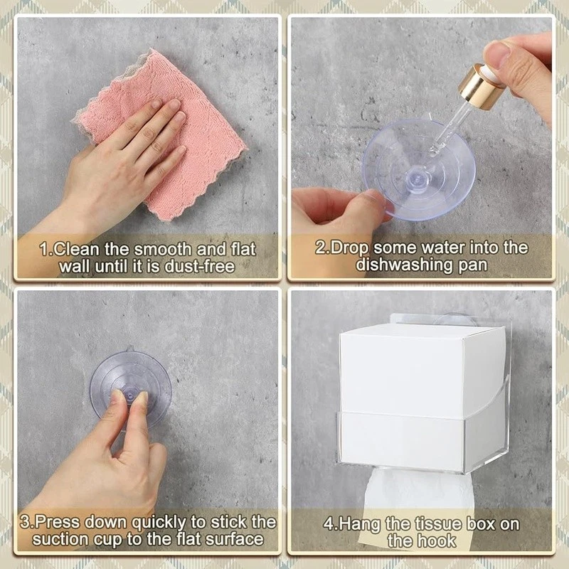 Acrylic Tissue Box Holder Wall Mount Suction Cup Easy Install Home Office New