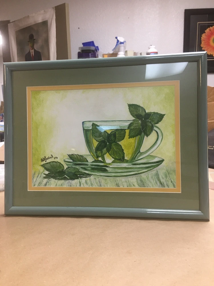 Acrylic painting on acid free paper canvas. Dimensions on frame are about 12×15 1/4 inches. This painting was acquired on or about 2016 with many others from this artist. It has been double matted using all acid free materials. I tried reaching The artist recently and I am sure due to the war we have lost communication. Frame and matting have been hand/custom built from Creative Picture Framing located in downtown Terrell Texas for the past 27 years. 1222