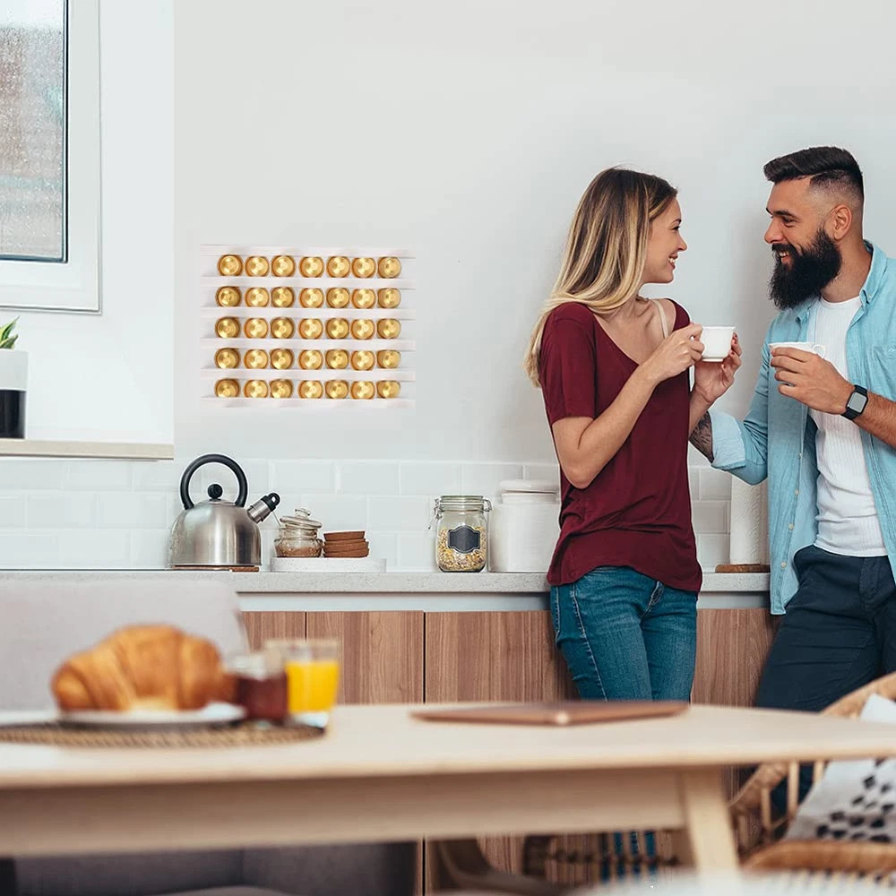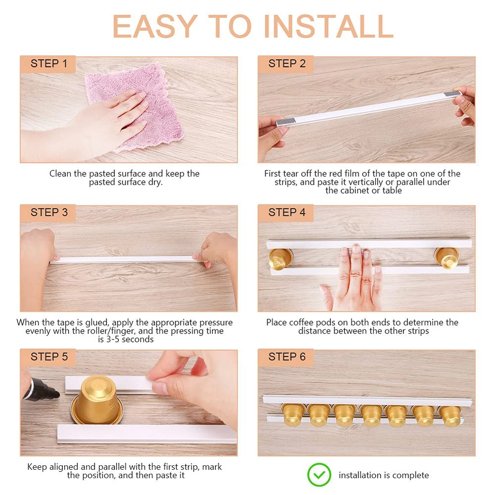 ⋆ Wall-Mount K Cup coffee Pod holders /Organizer, It’s Time to start enjoying your Coffee every morning⋆☛ REASONS TO CHOOSE KCUP COFFEE PODS HOLDER★ USE IN COFFEE SHOPSDifferent flavors are displayed every day for customers to choose, decor your coffee station. This coffee pods holder is convenient for customers to choose and also saves space for your countertop.★ ADVANCED DOUBLE-SIDED TAPEDouble-sided self-adhesive tape for quick and simple installation, No special tools required or any holes to drill, no need to go through the wall, just stick k cups organizer wherever you want★ STYLISH DECORThe smooth surface and elegant design kcup coffee pods holder can decorate your kitchen counter and desk space.★ KEEP YOUR COFFEE LIFE ORGANIZEDYou drink coffee for convenience and the great taste. If you want to keep things simple, you'll need our Coffee Holder so you can quickly and easily find your favorite coffee pods without rummaging through untidy drawers.★ GREAT GIFT IDEALThis is perfect, whether you are looking for coffee gifts, housewarming presents, wedding gifts for the bride and groom, unique wedding gifts for couples, house gifts, Mr. and Mrs. Gifts, engagement gift for a couple, wedding shower gifts or wedding anniversary gifts.★EASY CAREWipe clean with a damp cloth. It is with Nespresso, Green Mountain, Solimo, Starbucks, etc and will add convenience and organization to your coffee station at home➲SPECIFICATIONSBrand Name: VORENProduct name: wall mount coffee pods holderMaterial: ABS plasticColor: whiteClick ADD TO CARTto get your Coffee Pod Holder TODAY! ✅ SUPERIOR QUALITY- Our k cup organizer is made from finest quality ABS plastic which is lightweight and durable giving it a premium feel that won't lose its shape. With a simple and stylish appearance, and is not easy to be damaged and deformed. It is an excellent decoration that can add beauty to your kitchen. ✅ EASY TO INSTALL- The k cup storage is equipped with strong adhesive tape, no drilling is required, and the installation is simple. You can also place it in any place, such as kitchen, countertop, office or any small table. Adhesive tape will not damage the product and the desktop and is easy to tear off without Leave a trace. ✅ SPACE SAVING- Nobody likes to waste counter space in the kitchen or office, this nespresso pods holder is the ideal way to save precious kitchen counter space, you can easily mount it vertically or horizontally on your kitchen walls, inside cabinet doors, under the cabinets, or even on your fridge. Keep your kitchen neat, clean, and organized. ✅ KEEP YOUR PODS EASY ACCESSIBLE- Keep track of all your coffee pods with this stylish and modern k pod holder. K cups of coffee and coffee placed on it and can be easily removed from both ends of the K cup holder. This k cup holders for counter can Kcups coffee pods of any size, with Nespresso, Green Mountain, Solimo, Starbucks, etc. ✅ AFTER SALE SERVICE- We also provide perfect after-sales service in order to bring you better customer products. For some reasons if you do not like our nespresso pod holder, feel free to us and we will resolve it in timely manner. We believe we will give you a good shopping experience
