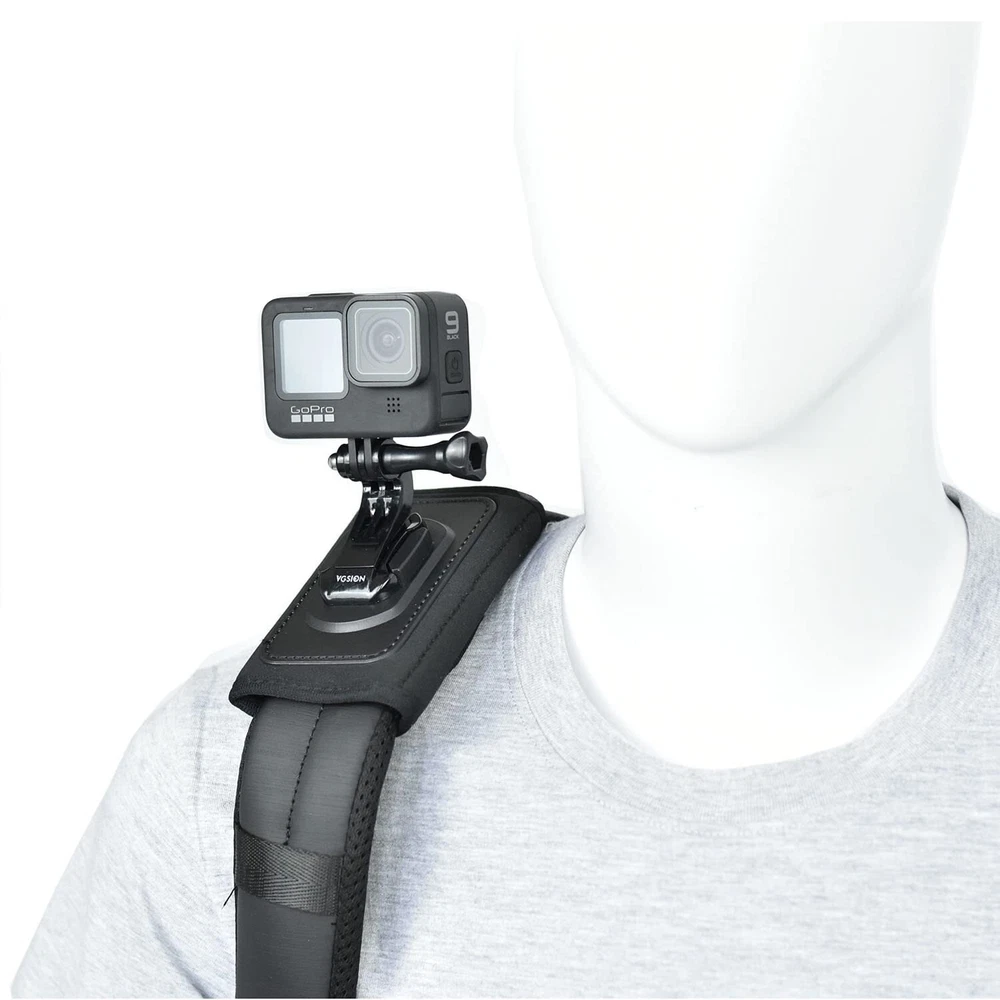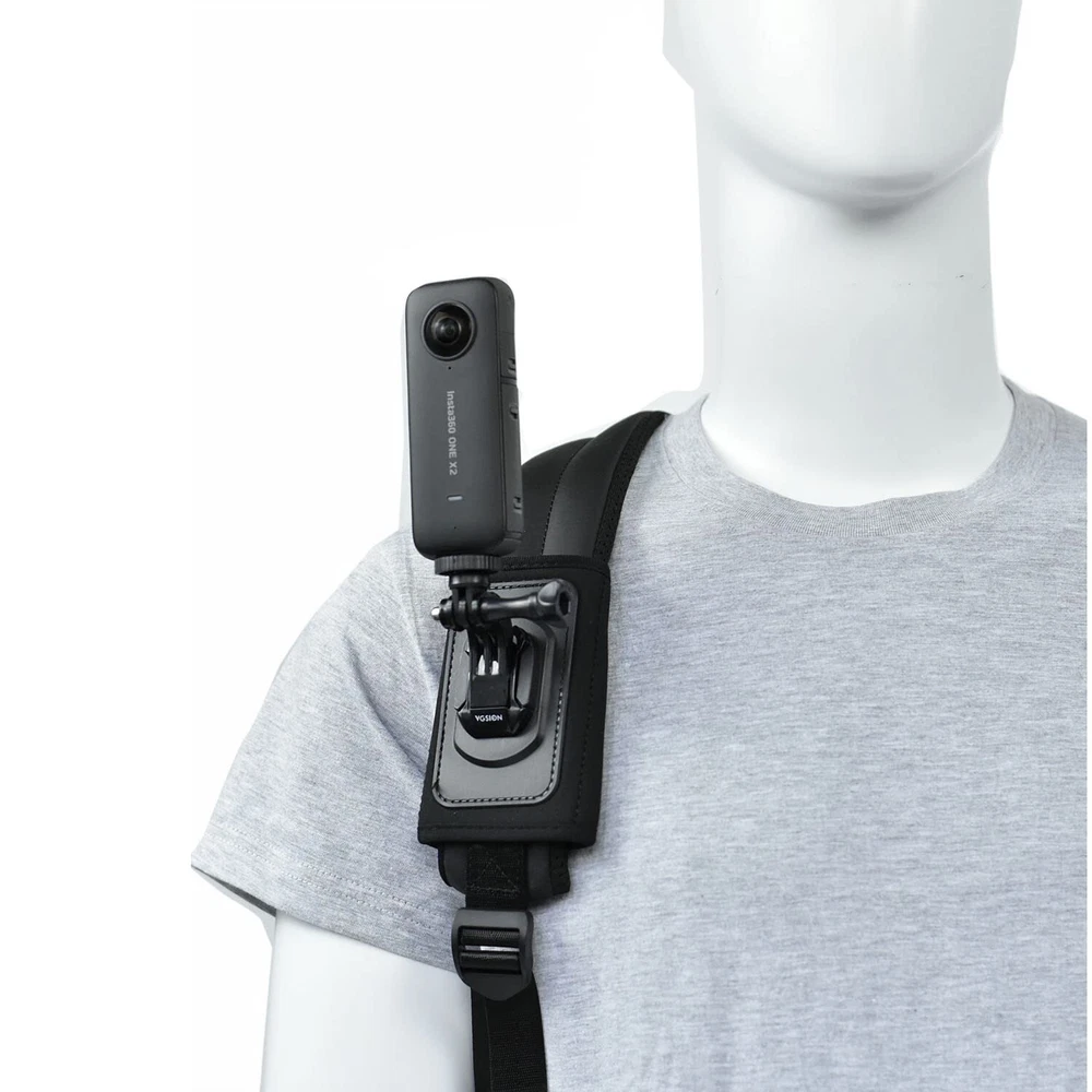 Description: use this strap to fix your cameras on the shoulder or backpack belt. It will make your hands free and get good shootings. Camera Shoulder Strap Mount This strap mount enables the camera to be attached to a backpack or shoulder belt, it will help you to get a better shooting angle and let your hand be free. Suits for most action cameras in the market. The strap mount is with 1/4 inch thread head and GoPro head, it supports most of the action cameras in the market, such as Insta360 one x, insta360 one, Osmo action, GoPro Hero Black, Hero Session, and other similar action cameras The strap is with velcro, it can attach to a backpack or shoulder belt very firmly. The mount is with J quick-release buckle, it is easy for you to fix cameras. Application: hiking, skiing, mountain clamping, biking or other outdoor sport activities With 1/4-20 thread head It can work with Insta360 one x, insta360 one, Garmini Virb360, Samsung Gear 360, Ricoh Theta V 4k 360 Spherical Camera Compatible with all GoPro Cameras, such as GoPro Hero 7/(2018)/6/5 Black Hero 5/4 Session/Silver and DJI Osmo action and other similar cameras. Made of elastic nylon, soft and comfortable come with quick-release buckle, easy to fix camera. Free hands: This strap mount with velcro allows you to firmly attach the camera to the backpack shoulder belt Fineworkship and Non-slip: fine seam, durable. Silicone anti-slip particles combined with PU anti-slip leather Adjustable: The mount has a J quick release buckle, you can adjust the tilt angle Wide Compatibility: with a mount adapter, the backpack mount is compatible with Insta360 One RS, One R, X4, X3, X2, GoPro Hero 10, Hero 9 / Hero 7 / Hero 6, 5 Session, and other action cameras Application: hiking, skiing, mountain clamping, biking or other outdoor sports activities