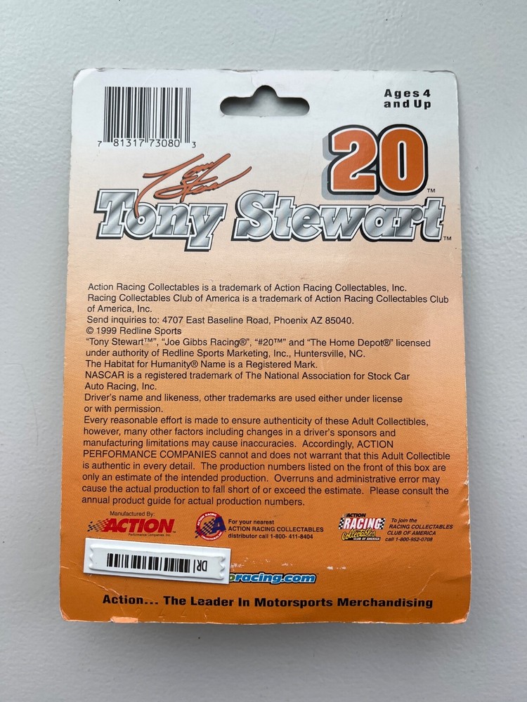 Delve into the world of NASCAR with the Action Tony Stewart #20 Home Depot Habitat for Humanity 1999 Pontiac collectible. This 1:64 scale diecast model is a must-have for enthusiasts and fans of the iconic driver, capturing the essence of Stewart's famed No. 20 car with remarkable detail. The vibrant design, featuring the Home Depot and Habitat for Humanity livery, celebrates a memorable partnership and a storied era of NASCAR.Carefully crafted to replicate the original vehicle's aesthetics and performance ethos, this model is a standout piece for display or track play. It's a tribute to the legacy of Tony Stewart and the rich history of NASCAR, making it an excellent addition to any collection or a thoughtful gift for the motorsport aficionado.