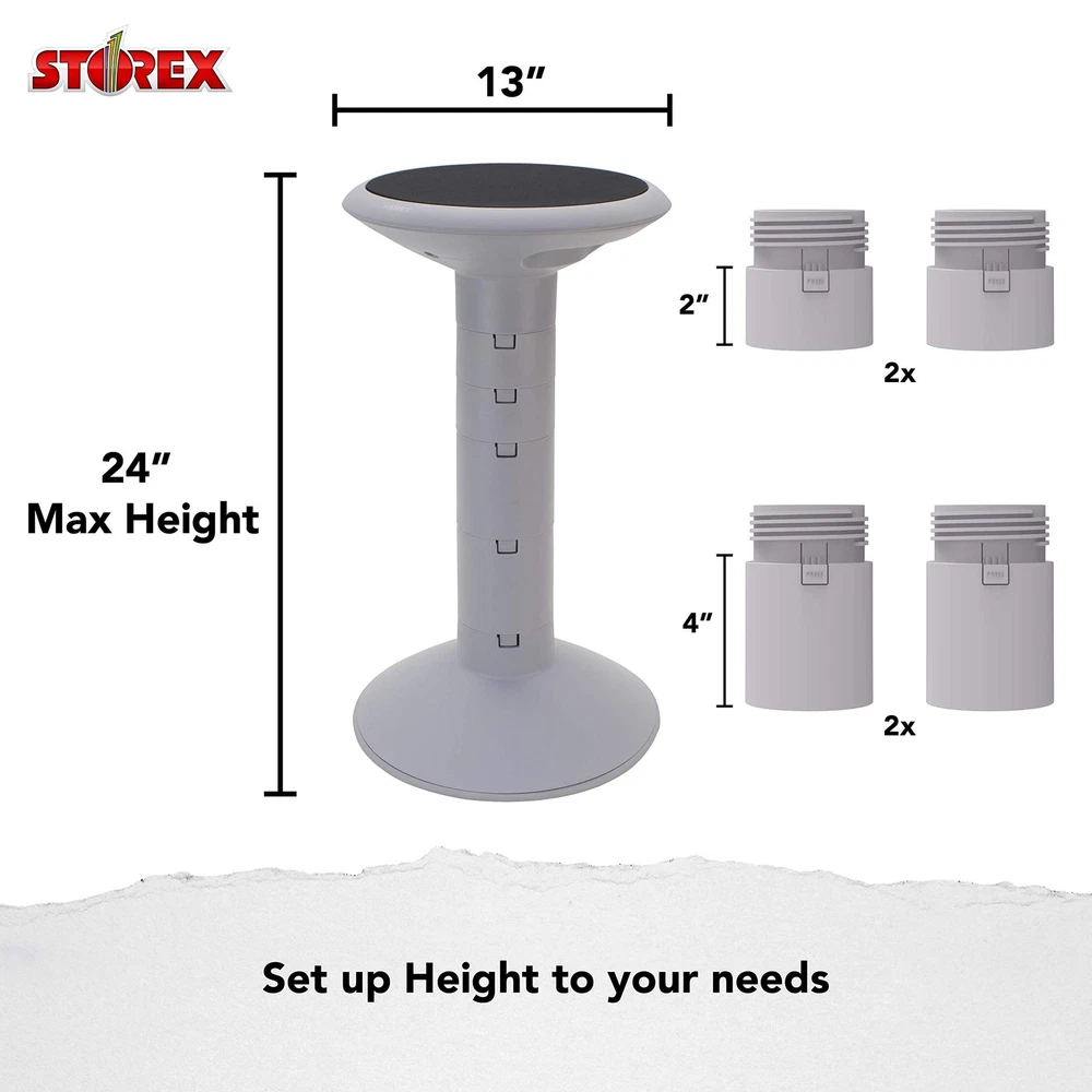 Active Tilt Stool – Ergonomic Seating for Flexible Office Space and Standing Desks, Adjustable 12-24 Inch Height, Gray (00322A01C) Adjustable seat height of 12 to 24 Inches in 2-inch increments Lightweight and easy to move with built-in handles Tool-free assembly; No pistons or moving parts Angled base for improved posture balance and stability Use at table height counter height or with a standing desk