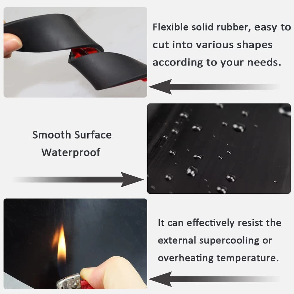Feature This neoprene rubber sheet has excellent stretching and durability properties, flexible and elastic. Can be easily cut into the customized size and shape with a scissor, especially suitable for DIY. The rubber seal strip with strong adhesive backing, easy to use and is a great product with smooth surface. Widely used for DIY gaskets, weather stripping, floor cushioning, electric insulation, sound reduction, etc. Specification Material: solid rubber Color: black Size:118 inches long, 1 inches wide, 1/8 inches thick Note: the neoprene rubber roll will have a slight smell during the production, which is a normal phenomenon. The smell will gradually fade away after a few days. Please allow an size error of 3-5cm because of the elasticity of rubber. Superior Material: Made of quality rubber material, the rubber strips with adhesive backing is solid enough than the sponge or foam ones. Black color and great product with smooth surface. Flexible and Durable: Rubber tape adhesive back can remain firm and flexible in a wide range of extreme conditions with its excellent durability and stretch. This rubber with adhesive backing have good wear resistance and noise reduction properties while reducing unnecessary friction. Strong Adhesive Design: Comes with adhesive backing, which is easy for you to use without extra adhesive tapes, good for instant installation. Easy to Use: The rubber adhesive strip can be simply cut into any shape or length that you need with a scissor, quite suitable for any DIY project. The size of rubber strips with adhesive backing is about 118 inch long × 1 inch wide × 1/8 inch thick. Wide Application: Adhesive rubber seal strip is widely used in house, commercial area and industry for daily use. This adhesive neoprene rubber strips with multiple purposes and abrasion resistance property are suitable for DIY gaskets, weather stripping, floor cushioning, electric insulation, sound reduction, etc.