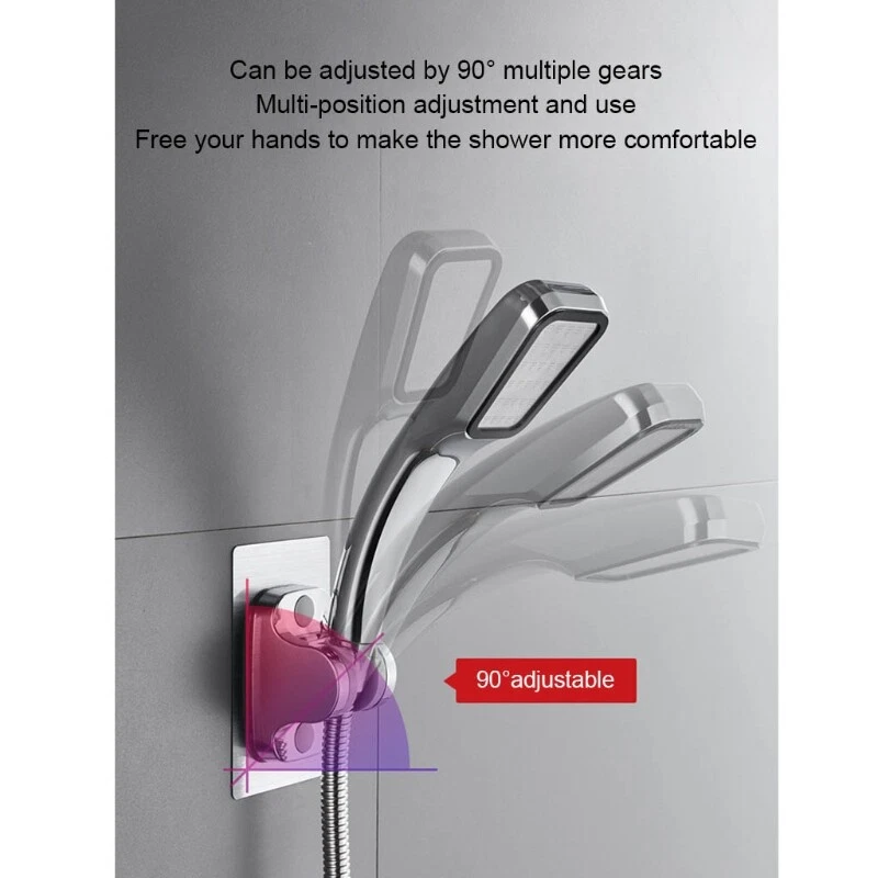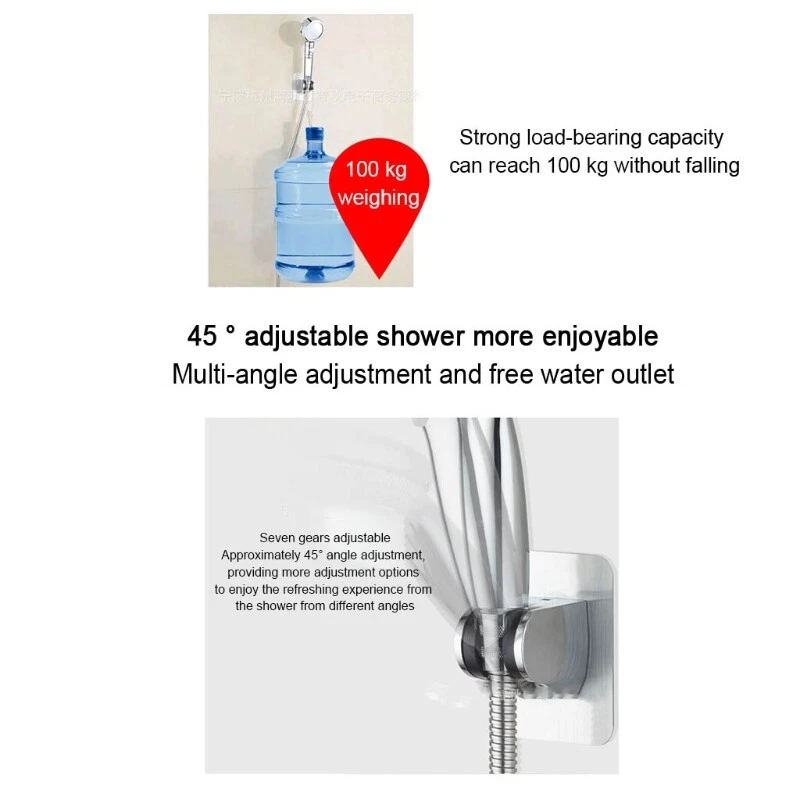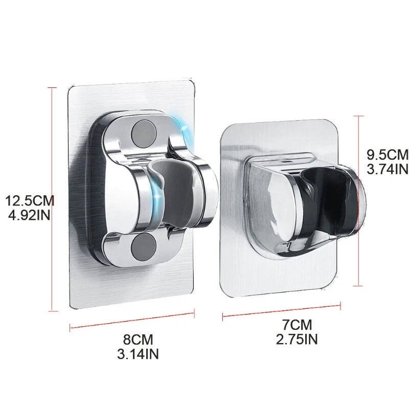 Adhesive Shower for Head Holder Adjustable Shower Wand Holder Wall Mount Bracket and high Features: No drill holes needed, no damage to your wall. Quick and easy mounting. Strong adhesiveness and remove easily and left behind. ABS material, durable, non rusting and not easy to break, long life to use. The whole process you can finish in seconds. the surface and do keep dry before sticking on, peel off the cover on the back, it to the surface and push hard to remove the air. Suggested waiting for 24 hours to make it more stable and reliable. The designed so that convenient to adjust the of shower for head, 45° adjustable shower for head bracket can the water jet position you want. Use premium adhesive works on a variety of surfaces. Besides flat, smooth surface such as metal, ceramic tile, glass, wall, Not suitable for hose shower, it's for metal hose shower. Specification: ABS A Size: approx.7x9.5cm/2.76x3.74in B Size: approx.8x12.5cm/3.15x4.92in Color: Silver, As pictures shown Optional Styles: A, B Quantity: 1 Pc Note: No retail package. Please allow 0-1cm error due to manual measurement. pls make sure you do not mind before you bid. Due to the difference between different monitors, the picture may not reflect the actual color of the item. Thank you! Package includes: 1 x Shower for Head Holder (other accessories in the picture is not included.)