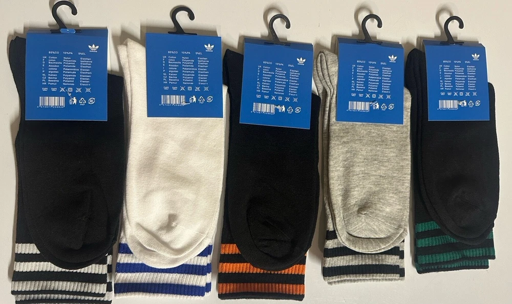 Adidas Cool Crew Socks 5 Pairs Unisex Different Colors 8-12