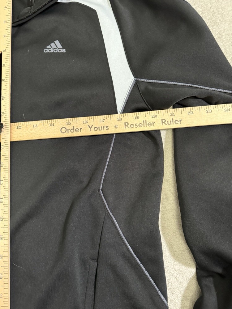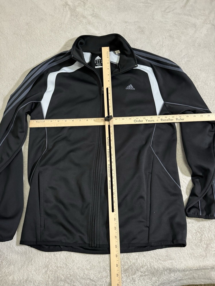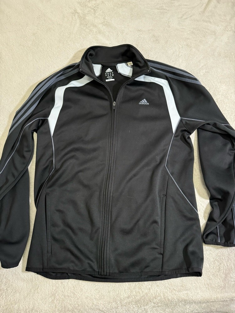 Elevate your workout game with this Adidas track jacket designed for men in size medium. The jacket features a solid black color and is made of polyester outer shell material with a softshell fabric type. It has a full zip closure and a stand-up collar style, with embroidered accents and a three-stripe design. This track jacket is perfect for casual occasions and is machine washable for easy care. It is suitable for various seasons, including winter, summer, fall, and spring, and is ideal for track and field, weightlifting, cross-training, CrossFit, bodybuilding, and wrestling. Get your hands on this high-quality jacket made in Vietnam and take your workout routine to the next level.