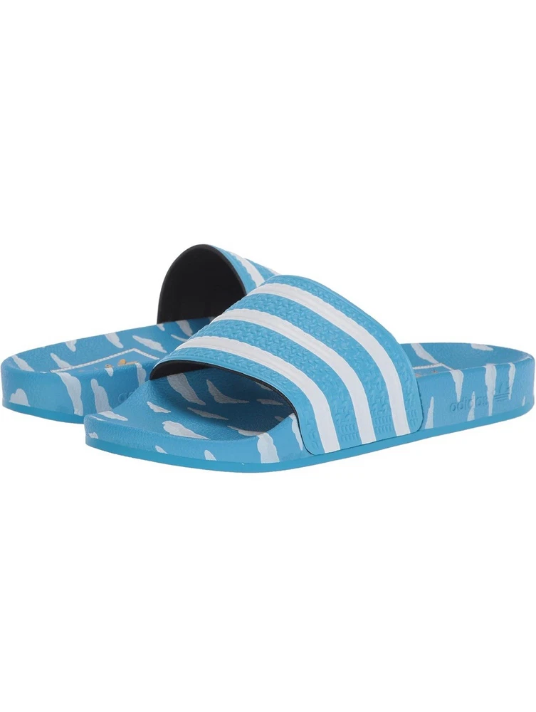Adidas Originals Adilette Comfort Slides Slipper, Blue/white Size 7