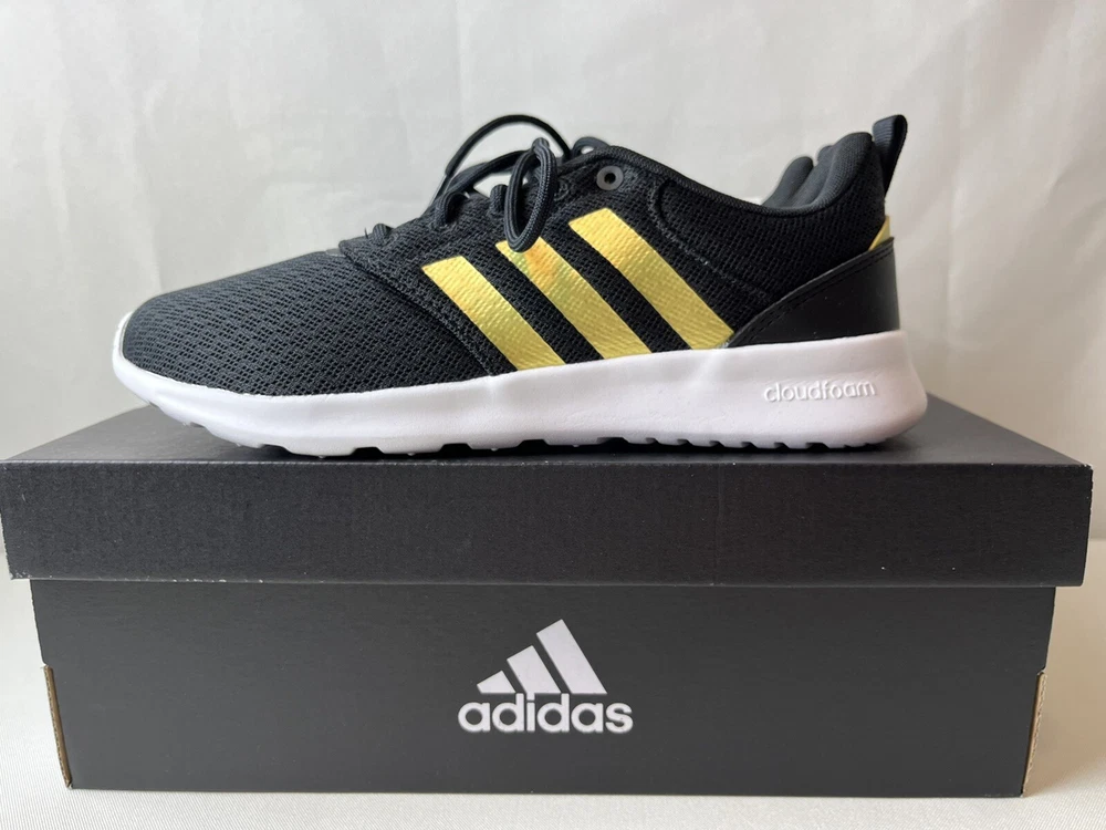 Adidas QT Racer 2.0 Black Gold Metallic Women's Size 8 NEW!