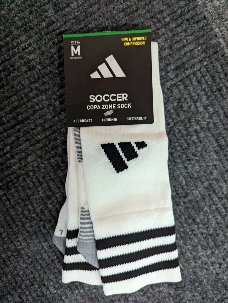 Adidas Soccer Socks MEDIUM Copa Zone Cushion Arch Ankle Compression Socks. Condition is New with tags. Shipped with USPS Ground Advantage.