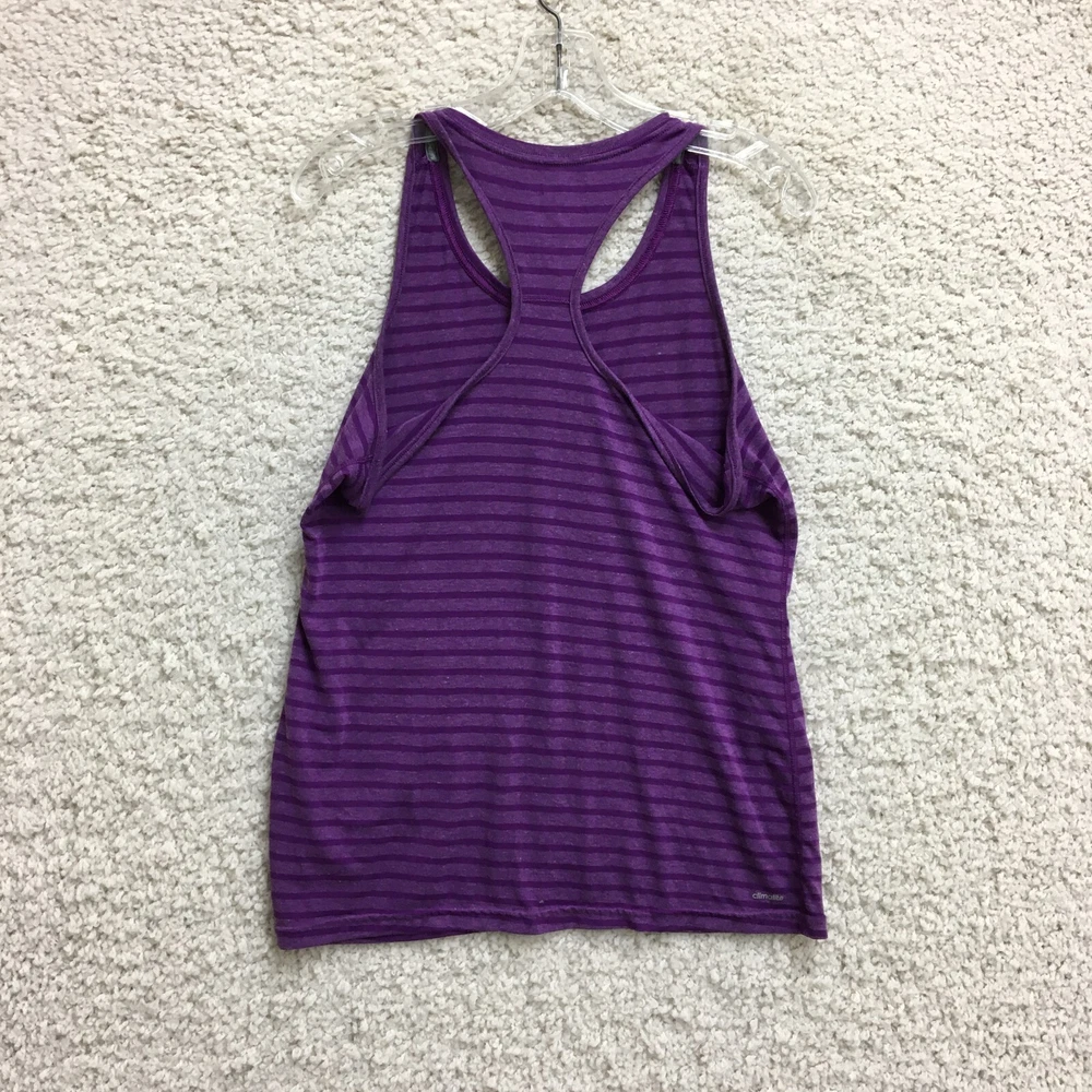 Type: Tank Occasion: Activewear, Casual, Travel Country/Region of Manufacture: El Salvador Closure: Pullover Color: Purple Season: Fall, Spring, Summer, Winter Neckline: Round Neck Pattern: Striped Sleeve Type: Casual Sleeve Theme: Classic, Logo, Sports Size: M Sleeve Length: Sleeveless Fabric Wash: Medium Seller Notes: “Very Good Used Condition. Please, See Pictures for Full Condition and Measurements.” Material: Cotton, Polyester Garment Care: Machine Washable Fabric Type: Blended Fabric Performance/Activity: Gym & Training, Running & Jogging, Walking Features: Breathable, Collarless, Lightweight Size Type: Regular Style: Basic Strap Type: Racerback Department: Women Brand: adidas Fit: Regular
