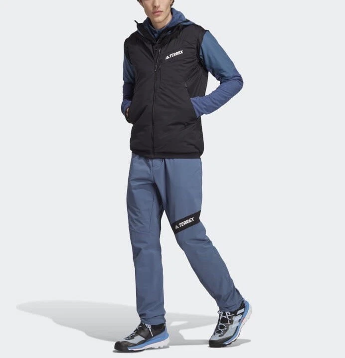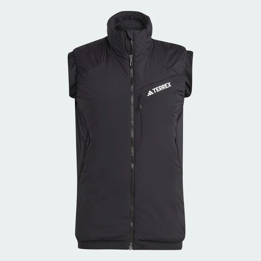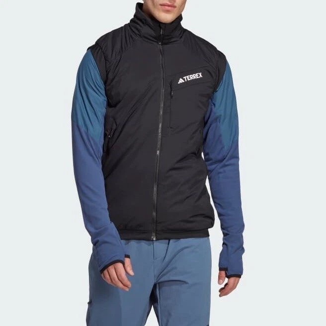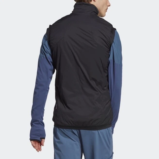 Elevate your outdoor adventures with the Adidas Terrex Techrock Stretch Primaloft Vest in black. This versatile vest is perfect for travel, casual wear, and workouts alike. The mid-length vest features a full zip closure, softshell fabric type, and a band collar style. With a slim fit and stretchy material, this vest is designed for comfort and mobility. It comes with a range of features including pockets, insulation, and a lightweight design. The Adidas Techrock model is a part of the TERREX product line and is ideal for outdoor activities such as hiking, hunting, and running.