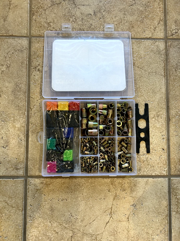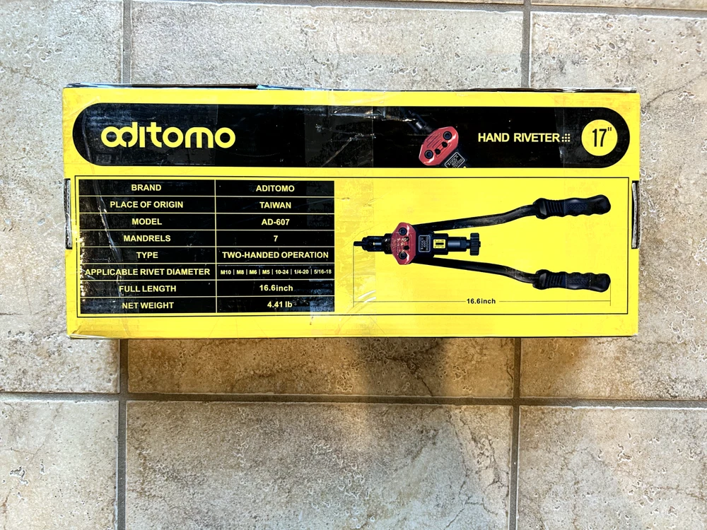 The Aditomo Rivet Gun Tool is a 17-inch heavy-duty rivet nut kit designed for easy operation and maximum efficiency. Featuring 7 mandrels and 200 nuts, this tool is perfect for various applications, including off-road modifications. Made from durable alloy steel, it promises longevity and reliability, while its ergonomic design ensures you can work smarter, not harder. BUILT TO LAST - Heavy-duty alloy steel construction ensures durability. EFFORTLESS OPERATION - Ergonomic design reduces effort by 50%. VERSATILE APPLICATIONS - Perfect for off-road and Jeep modifications. SATISFACTION GUARANTEED - 100% customer support for peace of mind. MAXIMIZE YOUR EFFICIENCY - Double compound hinges for ultimate leverage.