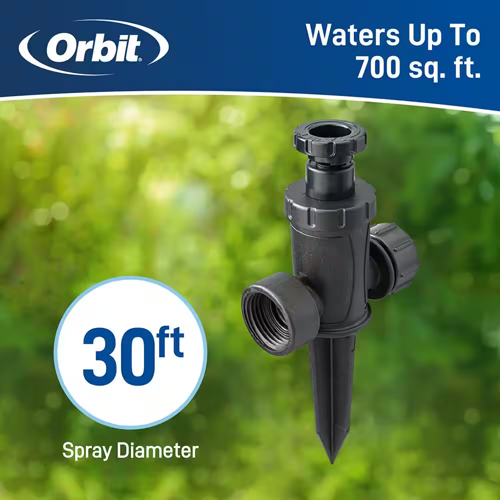 Fast Shipping On All Items 30 Days Money Guarantee Customer Support Excellent Service 100% Satisfaction Satisfaction Guaranteed Adjustable 30 Ft. Spot Sprinkle on Spike with Flow-Through Specification Adjustable Yes Base Material Plastic Commercial / Residential Residential Decorative No Maximum Pressure (PSI) 80 psi Maximum Spray Distance (ft) 30 Motion Sensor No Sprinkler Base Type Spike Manufacturer Warranty 6 years Coverage Area (sq ft) 700 sq ft Fitting Size 3/4" Product Depth (in) 7.1 in Product Height (in) 1.54 in Product Width (in) 3.28 in 3.28 inches x 7.1 inches x 1.54 inches. Item Description Changes faucet end of hose with Hydro-Seal tech for perfect fit. Mended hose stops leaks and keeps your arms and legs dry. Works on most light or regular duty 5/8 in garden hoses. The Orbit 360° Adjustable Sprinkler makes small area watering simple and customizable, with coverage adjusting up to 360°. The flow-through stake allows for the use of multiple sprinklers, if desired. Simplify your small area watering with the Orbit Small Area 360° Adjustable Sprinkler. About us We offer the best prices around on high quality products. Our E-store includes media such as books, movies, music and games while offering electronics, toys, sporting apparel, clothing, tools, general home, garden items and more. Shipping We are always working hard to ensure your package arrives as soon as possible. Please understand that some factors like weather, high postal traffic, and the performance of shipping companies are outside of our control. We offer free shipping to the lower 48 states and ship within 2-3 business days of payment, usually sooner. We do not accept P.O. Boxes. Please provide a physical address. For shipping outside of the continental USA, we only use eBay's Global Shipping Program.The item is shipped to KY and then sent to the rest of the world. International customers are responsible for all duties and taxes. Continue to check out to calculate costs for shipping the item to your country. Messages regarding eBay's Global Shipping Program MUST be directed at eBay EXCLUSIVELY. Returns We offer a 30-Day Return Policy on items in which you are not completely satisfied with. You have the option of a full-refund or an exchange of the item. No returns are available on items shipped outside of the USA Satisfaction We try over very best to make sure every customer is completely satisfied. If there's a problem, message us! We're happy to help. Payment Options Shop With Confidence