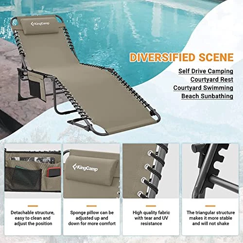 This chaise lounge is a game-changer for outdoor relaxation! The 5-position adjustment makes it perfect for tanning, reading, or just lounging—so comfortable I almost fell asleep! Super sturdy steel frame holds up well, yet it folds easily for storage. Beige color looks chic by the pool or beach. Super fast delivery and great seller—totally worth it!