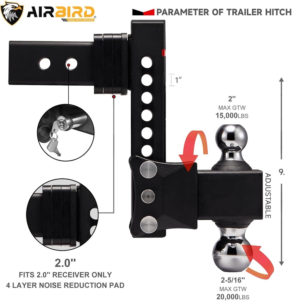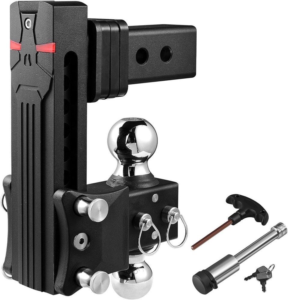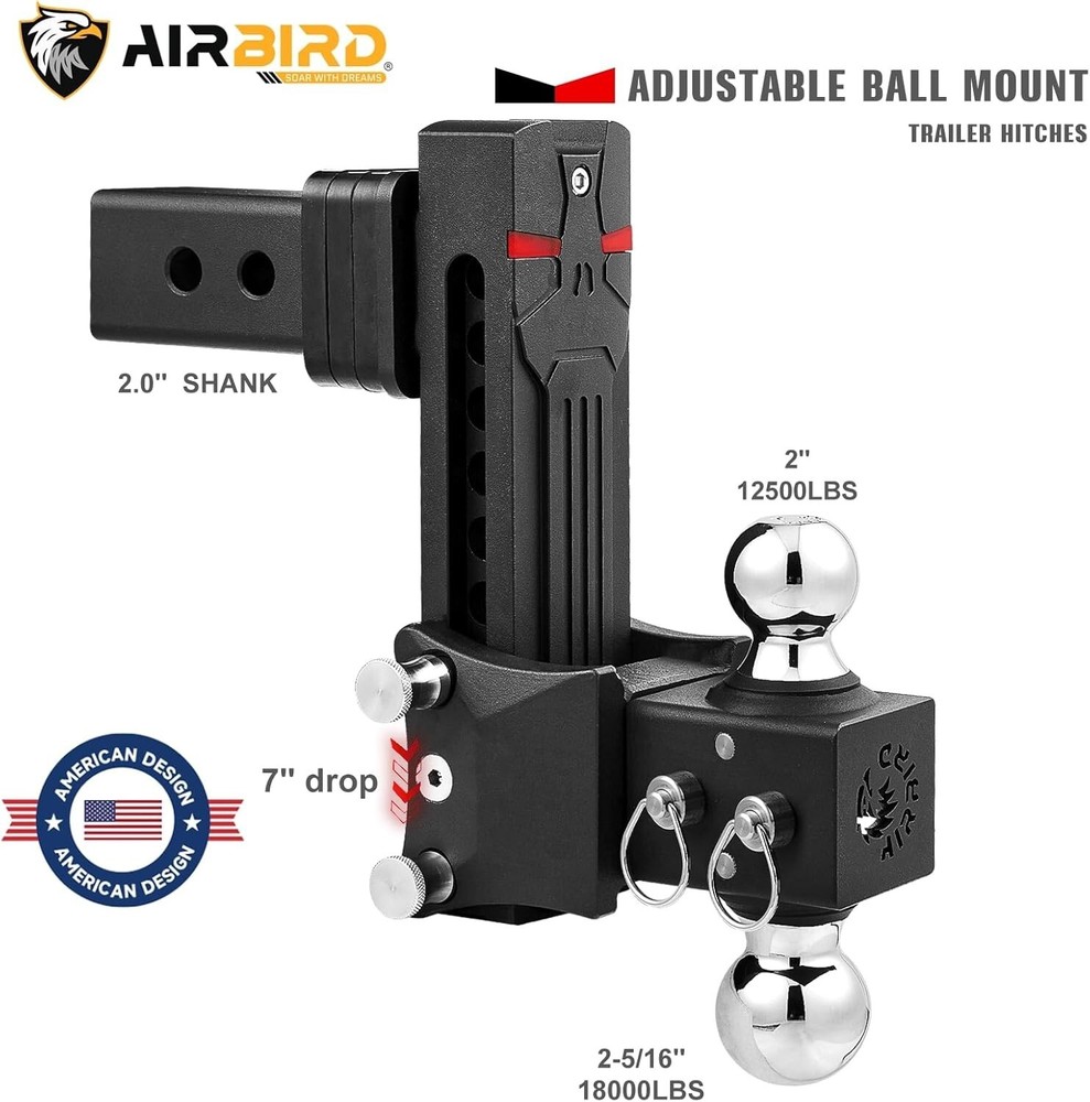 ITEM DESCRIPTION ⚠️ : This is not a brand-new product. However, it offers highly competitive prices. The accessories are complete, but there are some scratches. Material: Steel Ball Size: 2" and 2-5/16" Adjustable Height: 7" Drop/ Rise Loading capacity: 2 " Ball-12,500 lbs; 2-5/16" Ball -18,000 lbs Pin Hole Diameter: 5/8" Compatible with: Vehicles with 2-inch Hitch Mounts Package Includes: Adjustable Steel Tailer Shank 2 Balls (2" & 2-5/16") 1 Anti-theft Pins Locks With 2 Keys 1 Iron Pad And 3 Rubber Pads 2 Pins with R clips 1 Allen Key Wrench