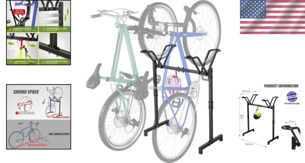 This bike stand is a game-changer for keeping my garage tidy! The sturdy alloy steel construction holds two bikes securely, and the adjustable width fits all frame sizes. Easy to assemble and freestanding—no drilling needed. Perfect for saving space while keeping bikes accessible. Highly recommend for anyone needing a reliable storage solution!