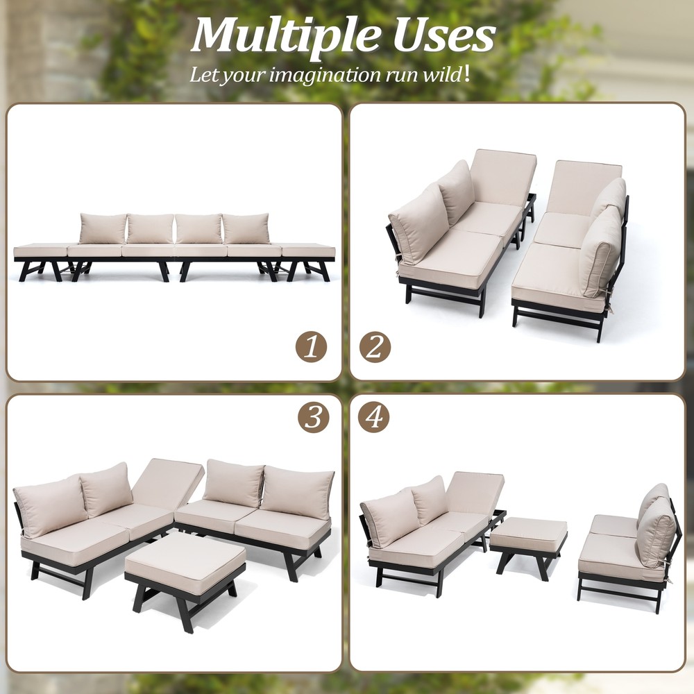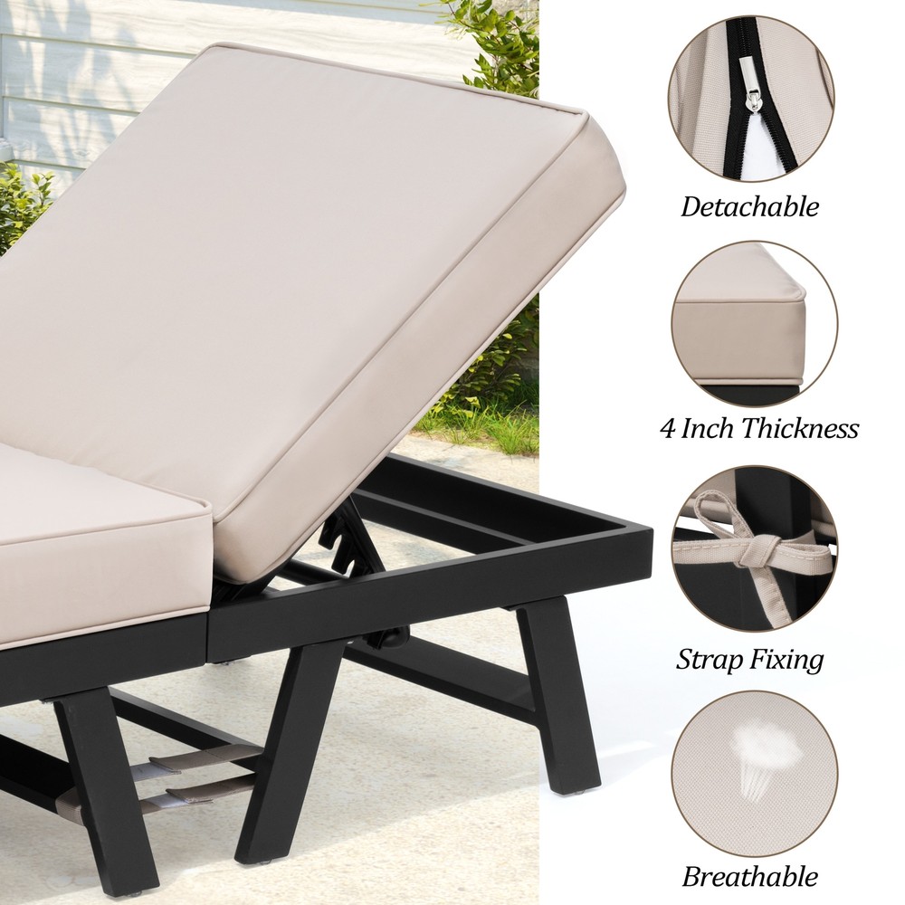 If you want to enjoy the sunshine or take a rest in your patio or garden, you can't miss our aluminum sofa daybed. Double seats are integrated, while single seats are separate. Single seats can be adjusted to 5 positions, and the entire set of products can be used as a lying bed. Single seats can also be used as a coffee table, flexible and versatile. There are thick cushions and soft pillows, providing you with a comfortable sitting or lying experience. Each cushion is equipped with 2 straps that can be fixed to the frame so that they do not shift during use. Features: Includes one or two sofas (options) Made of aluminum frame with textilene fabric Double seats are integrated, while single seats are separate Single seats can be adjusted to 5 positions 4 inch thickened design cushion Free Shipping Over $49.99* Details Outdoor Patio Sofa Daybed Adjustable Aluminum Chaise Lounge Bench with Cushion Product Description: If you want to enjoy the sunshine or take a rest in your patio or garden, you can't miss our aluminum sofa daybed. Double seats are integrated, while single seats are separate. Single seats can be adjusted to 5 positions, and the entire set of products can be used as a lying bed. Single seats can also be used as a coffee table, flexible and versatile. There are thick cushions and soft pillows, providing you with a comfortable sitting or lying experience. Each cushion is equipped with 2 straps that can be fixed to the frame so that they do not shift during use. Features: Includes one or two sofas (options) Made of aluminum frame with textilene fabric Double seats are integrated, while single seats are separate Single seats can be adjusted to 5 positions 4 inch thickened design cushion Each cushion is equipped with 2 straps Single seats can also be used as a coffee table The cushion cover has a zipper and can be removed Multiple uses Specifications: Dimensions(each sofa)76.8 inches long * 25.6 inches deep* 15.8 inches high