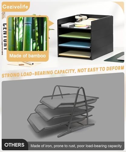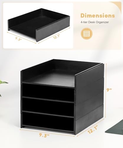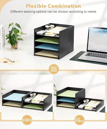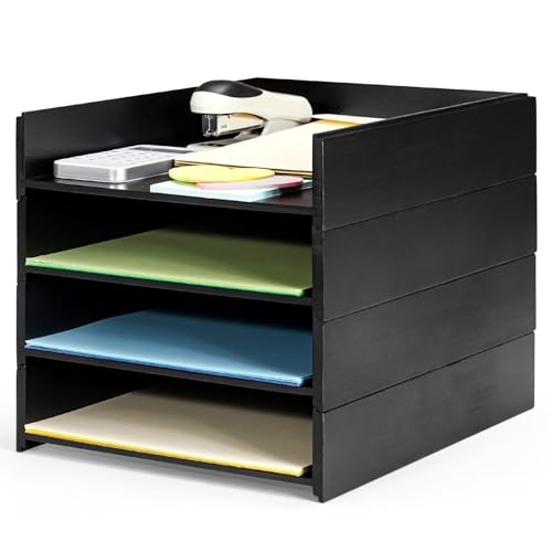 Adjustable Black Desktop File Organizer with 4 Compartments for Paper and Letter Storage