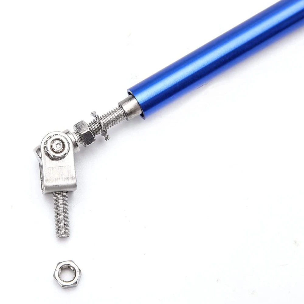 Specification: Type: Strut Rod Color: Blue Fitment: Universal Material: Made with premium quality aluminum alloy chrome finish Length: about 10cm , Len gth can be adjustable Function: fixed to the body components front and back (surrounding, skirt, head and tail lips) Feature: - These include fully articulated top and bottom joins which allow them to be installed at any angle. - It will support your vehicle bumper lip splitter stronger with and awesome eye-catching look. - Made with premium quality aluminum alloy chrome finish, high quality and durable. - These front bumper lip support rods are used to reinforce your front splitter or rear diffuser. - It is universal fit for any cars, SUVs, trucks. - It will give your Car a eye-catching look in a minute. Installation: 1.Require drilling holes into the bumper lip diffuser to attach safely to the vehicle. 2.Professional installation is highly recommended. Package Included: One pair (2 pieces) front bumper lip splitter rod strut tie bar