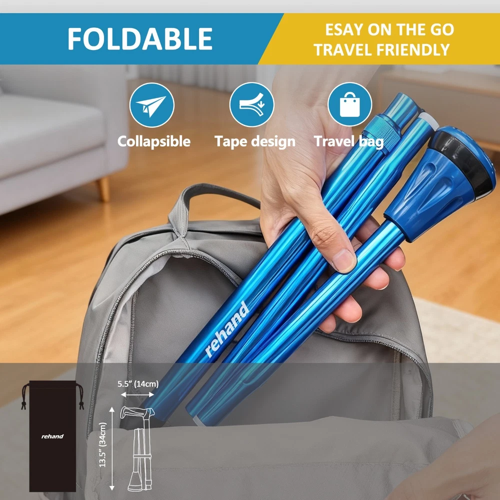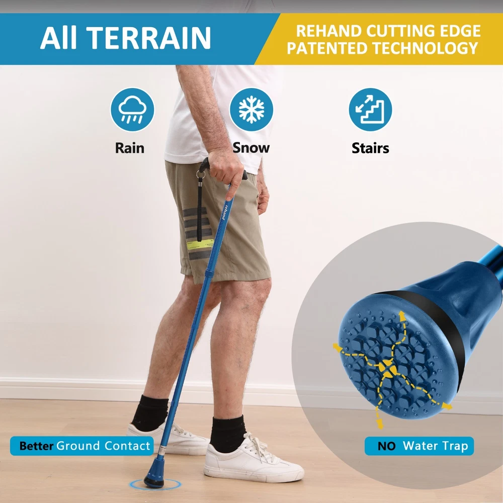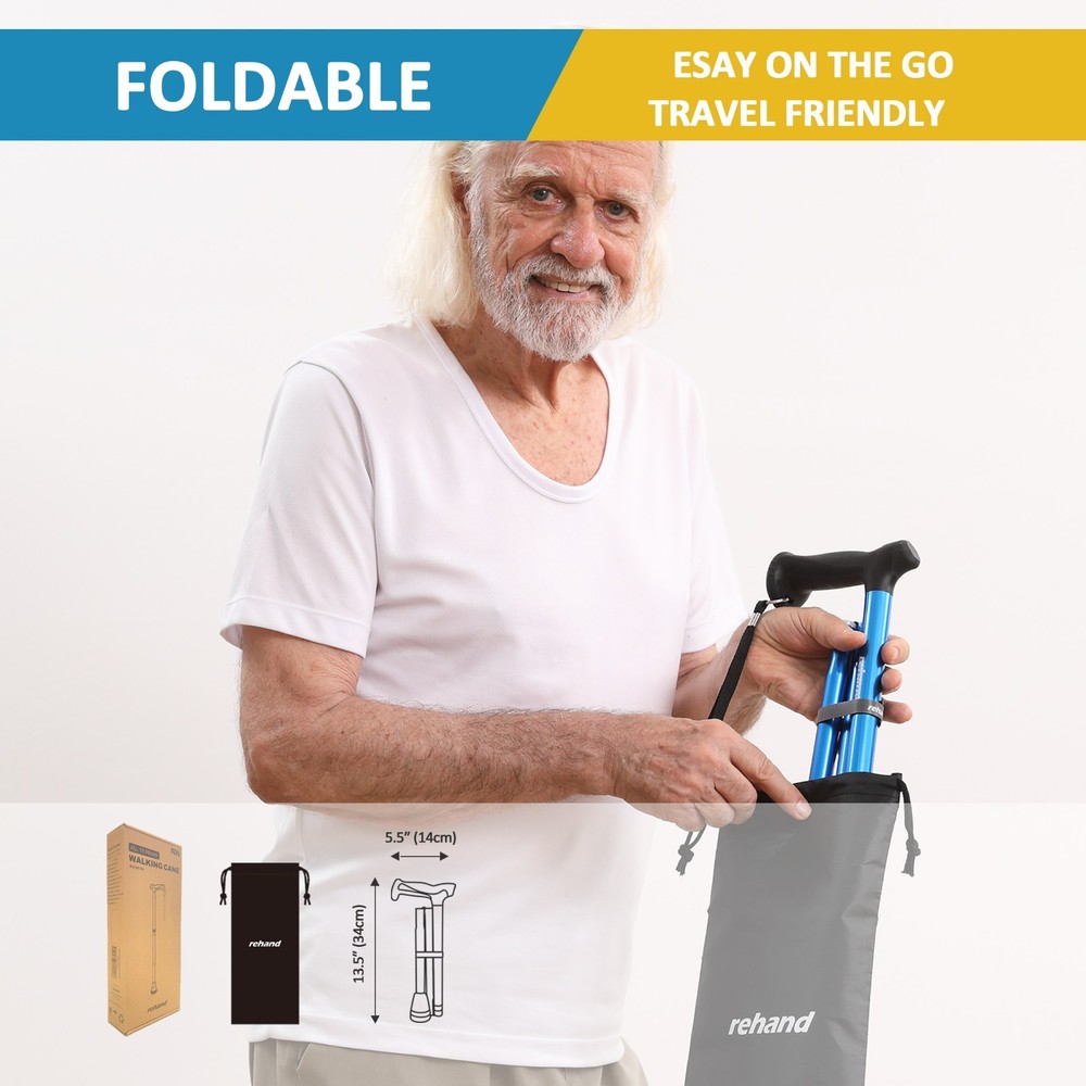 Are you prepared for a walking cane that is versatile collection of adjustable where you barely notice its weight?The REHAND Walking cane is very comfortable and is designed to help reduce strain for those who may have arthritis.Near the top of the cane located on the shaft, you will find 8 adjustable height button with one-inch increments makes almost all seniors,that is used to adjust the height.In addition, the ability for this cane to fold out from its folding position is extremely easy. Gravity takes over and with little effort, the cane is ready for use. Walking cane are not designed to substitute for bearing all the weight you normally would on your legs, but to provide you with an extra foot on the ground for balance. The cane adds a third point of ground contact that alters the bio mechanics of walking to affect balance, relieve painful joints and provide stability to the user.
