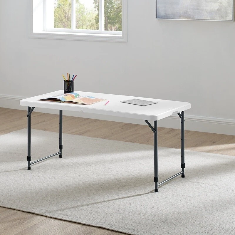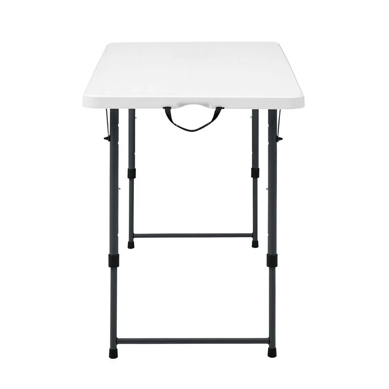 You may also like Modern 38.6" Wood Lift Top Coffee Table with Hidden Storage Shelf Living Room US 81.84 USD 86.15 USD Free shipping 5% off Square Side Table Wood Living Room Furniture w/ Storage Rustic Weathered Oak US 68.88 USD 72.5 USD Free shipping 5% off Wood Rectangle Coffee Table Sturdy Living Room Sofa Side Den Office Furniture US 41.52 USD 43.71 USD Free shipping 5% off Narrow Console Table Industrial 2-Tier Entryway Hallway Storage Sofa Table New 59.37 USD 62.49 USD Free shipping 5% off High Behind Couch Table W/ Outlet Narrow Console Table Living Room Entryway New 78.27 USD 82.39 USD Free shipping 5% off C Shaped Accent Table Snack Side Table Living Room Bedroom Couch Laptop Stand US 44.44 USD 46.78 USD Free shipping 5% off Round Coffee Table Storage Rustic Living Room Sturdy Metal Legs Wood Grain New 74.13 USD 78.03 USD Free shipping 5% off Modern Rectangle Lift Top Coffee Table Hidden Storage Shelf Display Living Room 121.12 USD 127.5 USD Free shipping 5% off Versatile Wood Coffee Table Spacious Indoor Durable Top Surface Livingroom Home 41.52 USD 43.71 USD Free shipping 5% off Modern Hairpin Rectangle Coffee Table Indoor Livingroom Study Decor Furniture US 65.31 USD 68.75 USD Free shipping 5% off Side Table 3 Tier Stand with Storage Shelves for Office Bedroom End Table 24.37 USD 25.65 USD Free shipping 5% off Folding End Table Storage X-shaped Legs MDF Wood W/ Removable TV Tray 22 Pound 47.94 USD 50.46 USD Free shipping 5% off Make your next event a success with this 4-foot adjustable folding table from . Adjusts to four different heights to meet all your needs. Our pinch-free buttons allow for easy folding and unfolding of legs, plus the carry handle makes it perfect for taking it on the go. The scratch and stain-resistant resin surface ensures lasting durability and easy clean-up. The adjustable fold-in-half table is perfect for all your different needs and occasions. It is great for everyday use, both indoors and outdoors. Fold-in-half table with 4 adjustable height settings: 48" L x 24" W x 22" / 24" / 29" / 34" H Comfortably seats 4 adults Adjust the height by pushing side buttons and lifting the tabletop. Patent-pending ergonomic pinch-free push-button for easy folding and unfolding of legs Auto-locking and unlocking system in the center of the table Easily folds in half for convenient storage or transport Constructed of UV-Protected high-density polyethylene plastic and gray powder-coated steel Oval legs for strength and durability Includes built-in carry handle, for easy transportation Built for indoor and outdoor use Durable Caps on legs to prevent floor damage No assembly is needed, can be open and folded in a few seconds Folded dimension: 24. 49" L x 23. 98" W x 2. 99" H Weight: 17. 42 lbs. Weight Capacity: 200 lbs. Perfect for your home, office, or outdoor activities You may also like Incontinence Postpartum Underwear Women Maximum Absorbency Discreet Comfort Fit 19.25 USD 20.26 USD Free shipping 5% off Extra Large Wheeled Storage Bin W/ Latch Lid Stackable Totes Home Office Garage 23.61 USD 24.85 USD Free shipping 5% off 10 Inch Pole Saw Attachment Trimmers Pruning Dead Branches Automatic Lubrication 54.84 USD 57.73 USD Free shipping 5% off Sensitive Skin Dog Food Salmon Protein Digestive Health Skin Coat Crunchy Kibble 48.95 USD Free shipping IATA Approved Plastic Dog Kennel Medium Travel Easy Assembly Safe Design New 109.15 USD 114.9 USD Free shipping 5% off Organic Extra Strength Biotin Gummies Hair Skin Nail Support 10000mcg 90 Count 16.02 USD 16.86 USD Free shipping 5% off Lightweight Graphite Spinning Rod Cork Grip Freshwater Saltwater Fishing New 41.18 USD 43.35 USD Free shipping 5% off New 12-Piece White Stoneware Dinnerware Set Serving Plates Bowls Kitchen Table 21.1 USD 22.21 USD Free shipping 5% off Beach Walk Candle Long Lasting Plant Wax Indoor Home Fragrance 150 Hour Aroma US 36.79 USD 38.73 USD Free shipping 5% off Rustic Whiskey Barrel Planter Indoor Outdoor Drainage UV Resistant Plastic New 23.71 USD Free shipping Disposable Liquid Wax Lamp Fuel 17 Hour Clean Burn Indoor Outdoor Use 48 Pack 66.77 USD 70.28 USD Free shipping 5% off Durable Steel Clothes Drying Rack Foldable Free Standing Laundry Organizer New 56.94 USD Free shipping