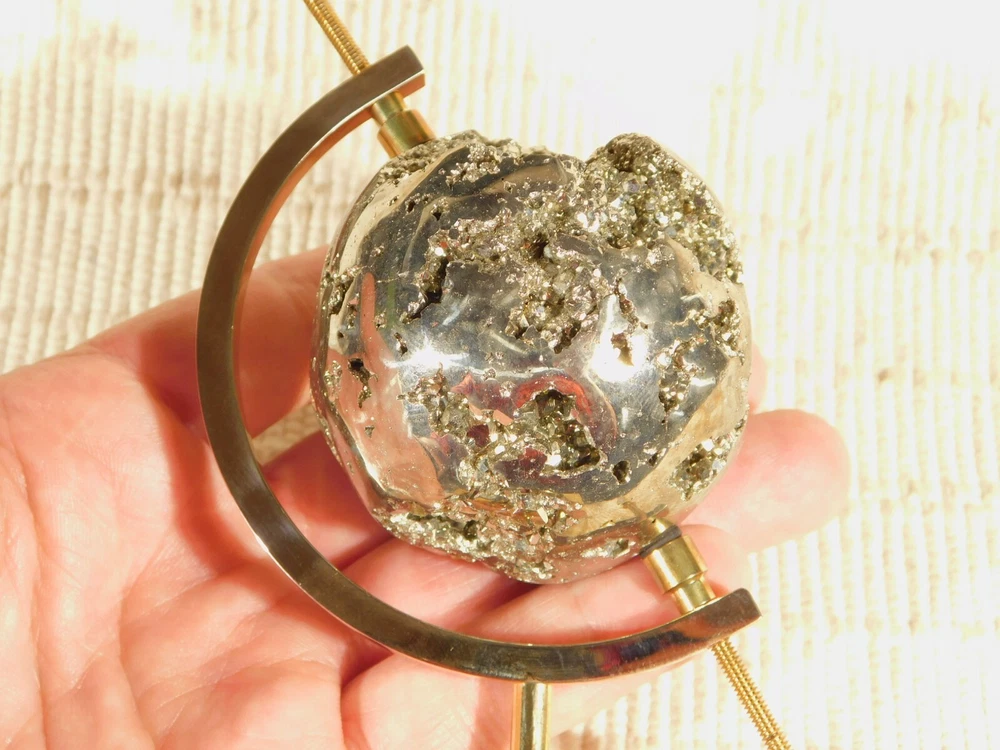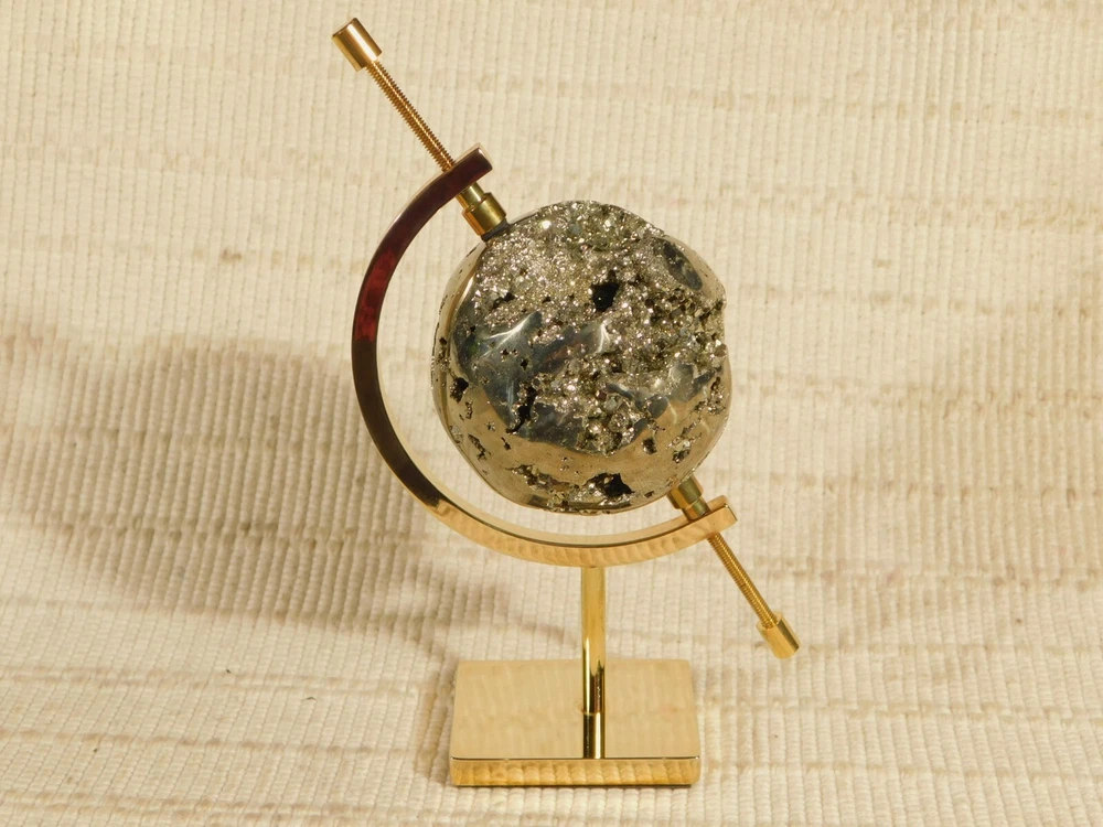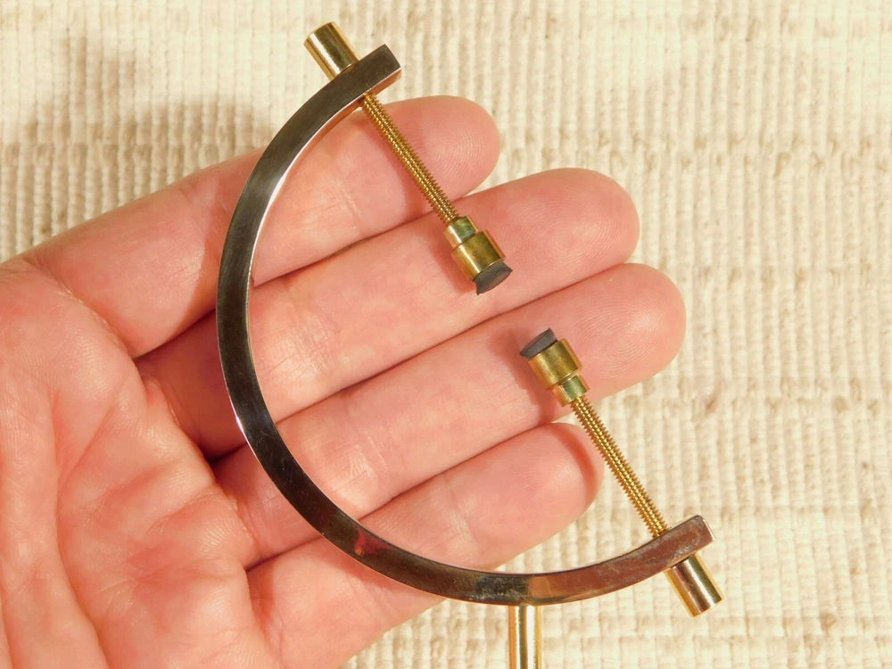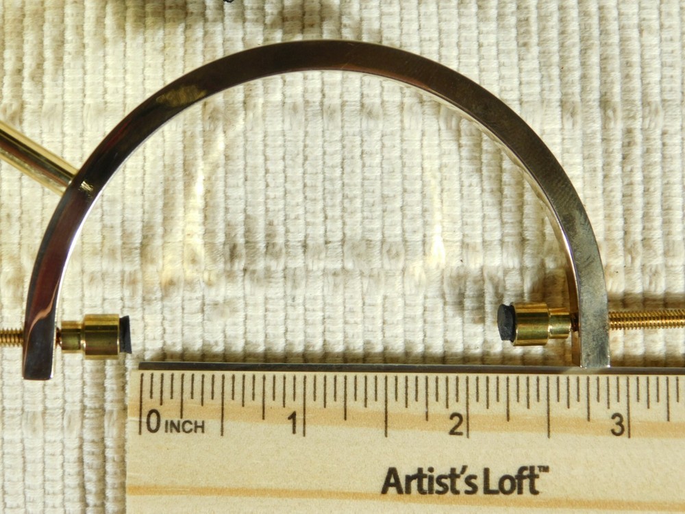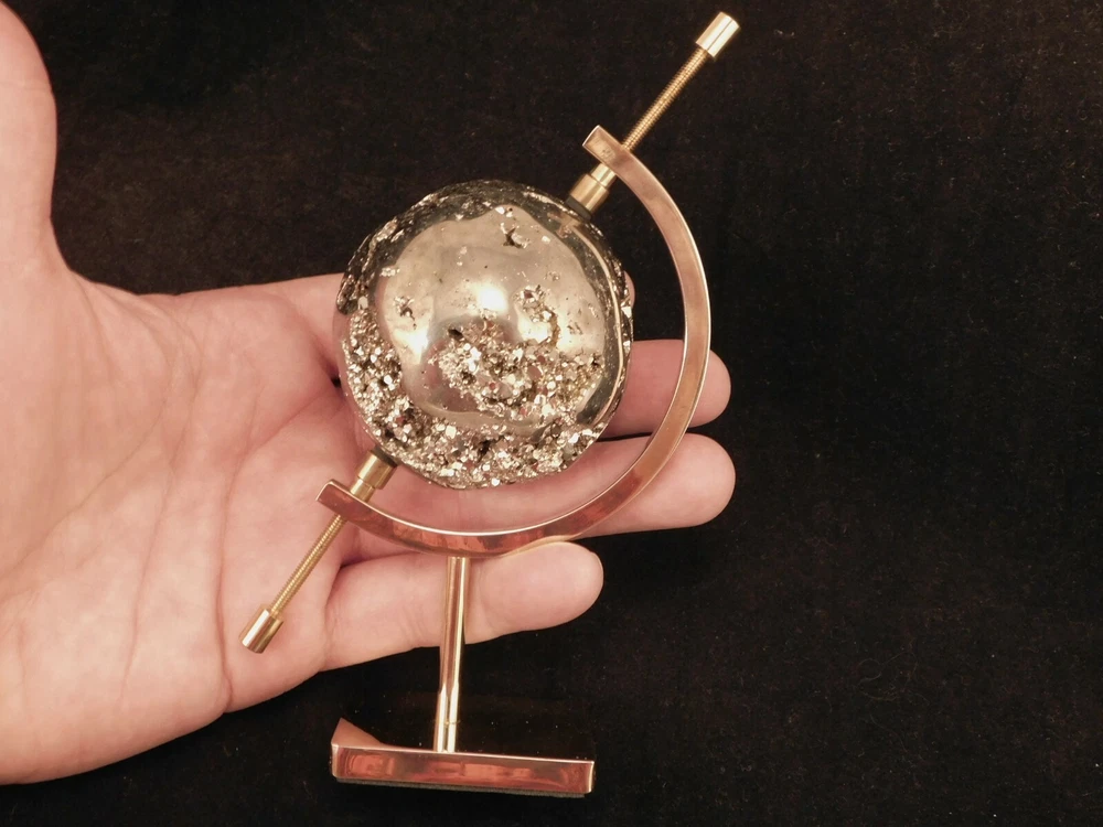 Hello, Here is a medium sized brass plated gold colored caliper type display stand! This adjustable stand has soft rubber pads to safely hold your pieces in place! Great for all kinds of meteorites, mineral specimens and any other collectibles you may have! It measures about 5" tall and the opening is adjustable from about 2.25" to 9/16" and the pyrite sphere measures 2 3/8" or 6cm wide. Combine and save on shipping! INTERNATIONAL BUYERS PLEASE NOTE: Import duties and taxes are not included in the item price or the shipping charges. These are the buyers responsibility. If you are concerned about them, please check with your country's customs office before buying. RETURN POLICY We guarantee you will be satisfied with your item or we'll refund your purchase price, less shipping charge, upon safe return of the item in original condition within 30 days. Prior to returning the item, please contact us within 48 hours of receiving item. If your item arrives damaged, please contact us within 24 hours of receiving as we will be happy to resolve any issue. Buyer is responsible for all return shipping charges.