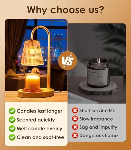 This candle warmer lamp is a game-changer! The adjustable height and dimmable feature let me customize the scent intensity, while the timer ensures safety. It melts wax evenly, filling my room with fragrance without an open flame. The amber lampshade adds cozy ambiance, and the included bulbs work perfectly. Fast shipping and great seller—highly recommend!