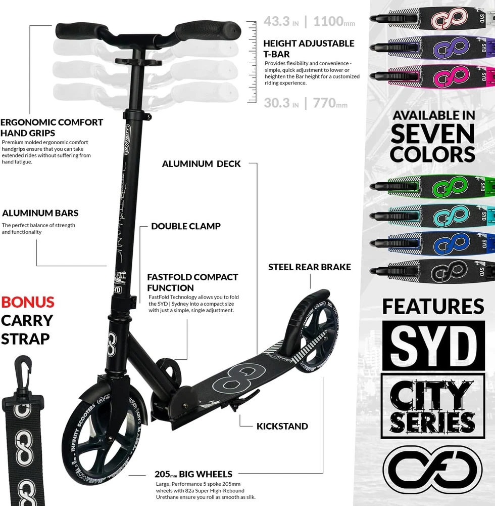 Adjustable Height Kick Scooter with Kickstand - FastFOLD Technology for Easy Use ‹ › ‹ › ‹ › ‹ › ‹ › ‹ › ‹ › ‹ › ‹ › ‹ › ‹ › Adjustable Height Kick Scooter with Kickstand - FastFOLD Technology for Easy Use The SYDNEY (SYD) Kick Scooter, part of our City Series, comes in an impressive selection of 7 vibrant colors, making it a stylish choice for every family member. Packed with features, this scooter is the perfect blend of practicality and fun. Key Features: FASTFOLD TECH: Our patented FastFold technology enables quick and effortless folding of the scooter in half with a simple single movement, making it easy to store or transport. FOLDABLE KICKSTAND: The innovative kickstand tucks under the deck while riding, easily folding out to provide strong and reliable support when you need it. HEIGHT ADJUSTABLE: Customize your ride with an adjustable T-Bar and handlebars for optimal performance suited to your height preferences. COMFORT HANDGRIPS: Enjoy long and intense rides with our specially designed ergonomic handgrips that offer an exceptionally comfortable grip. Choosing the Right Scooter for You: Explore our range of scooters, each catering to unique riding styles: SYD | Sydney: A big wheel scooter that is comfortable to ride, lightweight to carry, and easy to store, all while featuring a striking, eye-catching design. TYO | Tokyo: Elevates your ride with features like a cable driven hand brake, safety bell, larger wheels, and handlebar stabilization lock, perfect for riders of all ages. NYC | New York: Ideal for longer rides, featuring a super-wide deck for comfort and front suspension for a smooth cruising experience. LON | London: Our premium high-end luxury scooter, meticulously designed and crafted from years of scooter development expertise. Why Choose the SYDNEY Scooter? The SYDNEY Kick Scooter not only offers advanced features designed for convenience and comfort but also reflects a commitment to quality that elevates your riding experience. Perfect for families, the customizable height and ergonomic grips ensure everyone can enjoy a smooth ride, whether it’s a casual neighborhood cruise or an adventurous city exploration. Don’t miss the chance to elevate your outdoor experiences - choose your SYDNEY Scooter and join in on the fun today! Shipping Free & Fast Shipping - We offer free shipping to most of the USA with a normal delivery time of 3-7 days. However, due to the current situation, additional delivery time (up to 3 weeks) may be required for some items. Alternative Carriers - We may use alternative carriers (e.g. USPS, FedEx, UPS, etc.) to ensure your package arrives safely and on time. Due to the use of multiple carriers, we are unable to provide a tracking number automatically. Handling Time - Orders are processed and shipped within 1-2 business days of receiving cleared payment. Shipping Restrictions - Shipping to Alaska, Hawaii, Puerto Rico, Guam, and other US territories may incur shipping charges or delivery restrictions. Please contact us before ordering, or your order can be refunded/cancelled. State Restrictions - There may be restrictions based on your state of purchase. For example, certain items may not be shipped to California due to state regulations. Contact for Tracking Updates - If you require tracking updates or have any concerns about the delivery of your order, please feel free to contact us, and we will be happy to assist you. Return 30-Day Hassle-Free Returns - We want you to be completely satisfied with your purchase. If you are not, you can return the item within 30 days of receiving it for a full refund or exchange. Easy Return Process - To start a return, simply contact us and we will provide you with a prepaid return shipping label and detailed instructions. Restocking Fee - There are no restocking fees for returns. However, the buyer is responsible for return shipping costs if the return is not due to a seller's error. Refund Processing Time - Refunds will be processed within 5 business days of receiving the returned item in its original condition. Payment We accept all major credit cards, PayPal, and Apple Pay for your convenience. Your payment information is secure and encrypted to ensure a safe and seamless transaction. Please complete your payment within 3 days of purchase to avoid any delays in shipping. Feedback Your feedback is extremely important to us. We strive to provide the best products and customer service possible. If you are satisfied with your purchase, please take a moment to leave us a positive review. If you have any concerns or issues with your order, please contact us before leaving negative feedback. We are committed to resolving any problems and ensuring your satisfaction. Contact Us If you have any questions or concerns, please feel free to reach out to our customer support team. You can contact us through the eBay messaging system. We are available Monday to Friday, 9:00 am to 5:00 pm EST, and we will do our best to respond to your inquiry within 24 hours. Buy it now and enjoy a pleasant shopping experience! UPC: Not Set MPN: Not Set Unit Quantity: 10.4 Features: Folding,FastFold technology,Height adjustable handlebars,Comfort handgrips,Foldable kickstand,Lightweight design,Ergonomic handgrips,Front suspension,Adjustable T-bar,Strong kickstand,Carrying strap,Solid wheels Brand: Unbranded Type: Kick Scooter Color: Black Model: Not Set Suitable For: City Commuting Country/Region of Manufacture: Not Set Unit Type: lb
