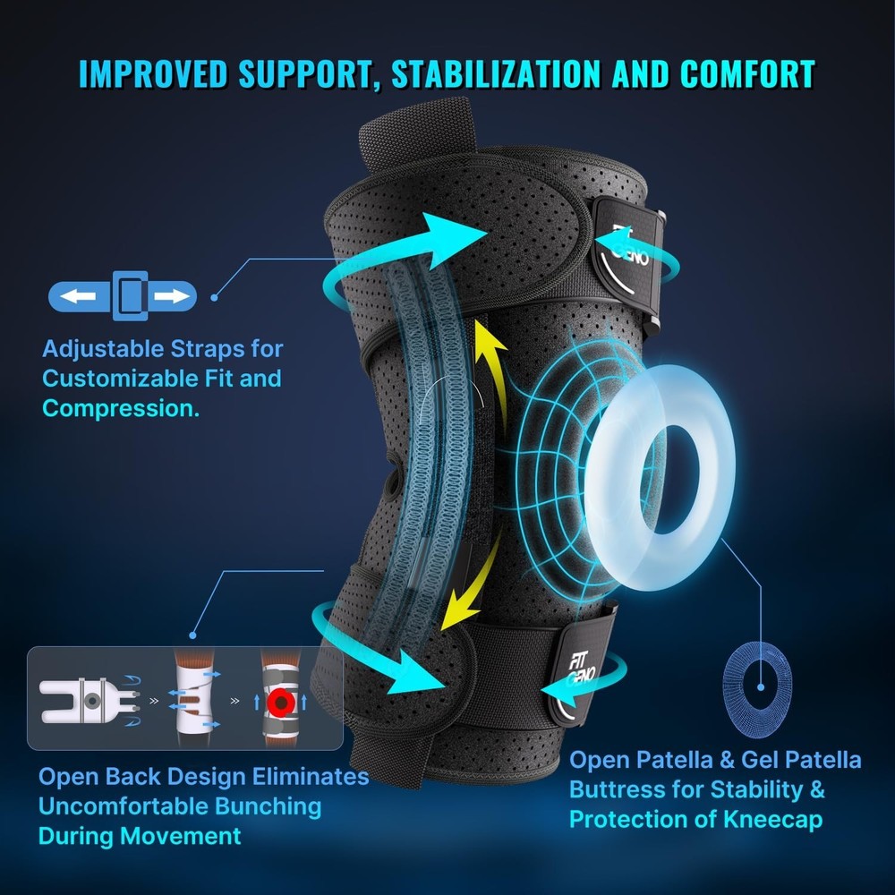 This brace is a game-changer! The adjustable straps give a perfect fit, and the side stabilizers make me feel secure during every movement. My knee pain has significantly decreased, and I can finally get back to my daily activities with confidence. Highly recommend for anyone recovering from injuries!