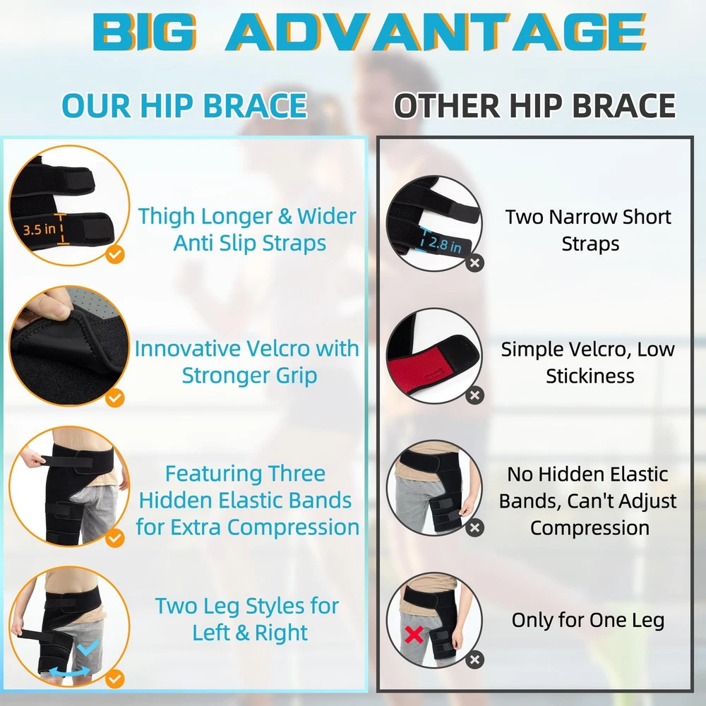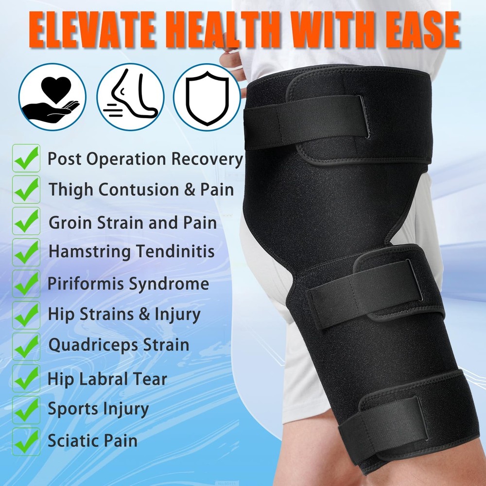 π£π₯ππ©ππ‘π§ ππ‘π π₯πππππ©π: Targeted compression is the key factor for fast recovery. Hip & Thigh brace can effectively promote blood circulation, increase oxygen supply to the hip, groin, thigh, hamstring, quad, buttock, and thereby help alleviate and prevent tendinitis, sciatica, bursitis, cellulite, varicose veins, swelling, edema, piriformis syndrome, hip labral tear, hip and hamstring strains, groin pull, pain, quadriceps, thigh pain, thigh contusion, and sports injuries ππ‘π‘π’π©ππ§ππ©π πππ¦πππ‘: Unlike other loose thigh braces, the groin support brace features six adjustable elastic bands. The three wider elastic straps are designed to secure the hip compression wrap, stabilizing muscles and tendons for optimal comfort and support, ensuring a customized fit. The other three inner pull-out elastic pressure bands are utilized to adjust pressure levels for varying demands. Widened nylon buckles ensure maximum adhesion and stability π¨ππ§ππ ππ§π ππ’π ππ’π₯π§: hamstring compression brace is made of a premium neoprene and nylon blend material that is lightweight, flexible, soft, comfortable, skin-friendly. Internal ventilation holes keep the hip and thigh dry and fresh. The non-slip design ensures the buttock brace stays in the right place at all times and doesn't build up. Silicone & latex free, so you can rest assured. The excellent and unique design makes it perfect for all-day comfortable wear πππππ πππ’πππ: Boost your performance and reduce the risk of injury with the hip & groin compression wrap, the ideal choice for athletes, fitness enthusiasts, and outdoor sports lovers. Our hamstring wrap is universal to fit a range of teens to older people, including office workers, travelers, nurses, and teachers who can all benefit from professional support and protection. Experience the benefits of experiencing enhanced support and flexibility in any setting ππ₯πππ§ π¦ππ₯π©πππ: hip stabilize is the perfect gift for family and friends and the best choice for relieving discomfort. Refer to our size chart to determine the best size for you. We also offer thigh brace, calf brace, and full arm compression sleeve. Let be your trusted partner! If you have any question, please us in time, we will do our best to provide you with the most satisfactory solution